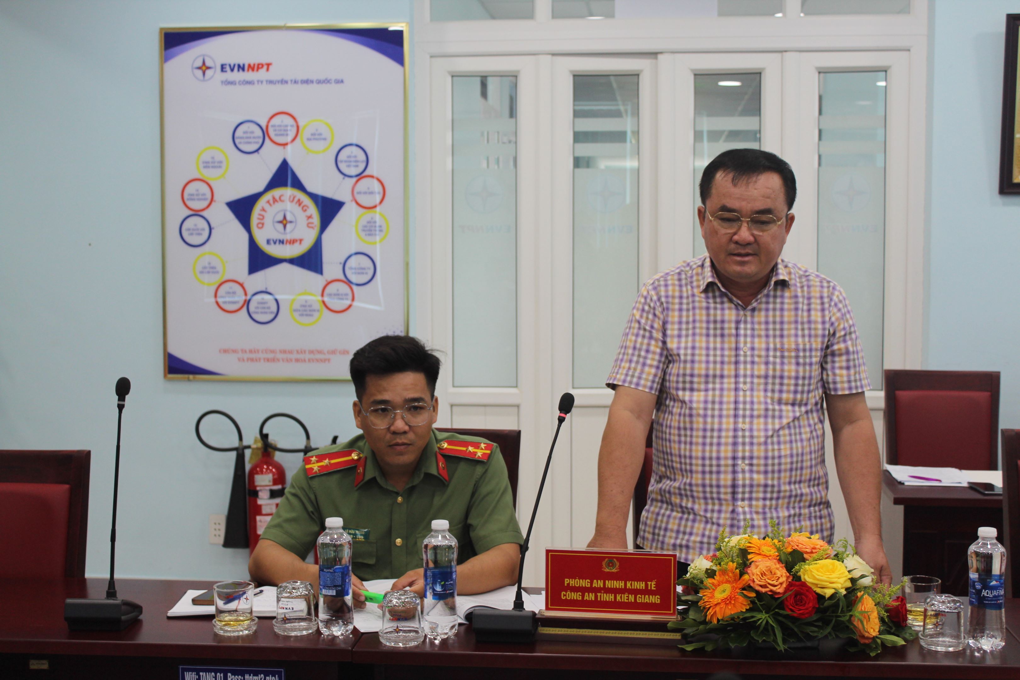Trung tá Đặng Văn Dững - Đội trưởng An ninh kinh tế tổng hợp thuộc phòng An ninh kinh tế công an tỉnh Kiên Giang phát biểu tại hội nghị.