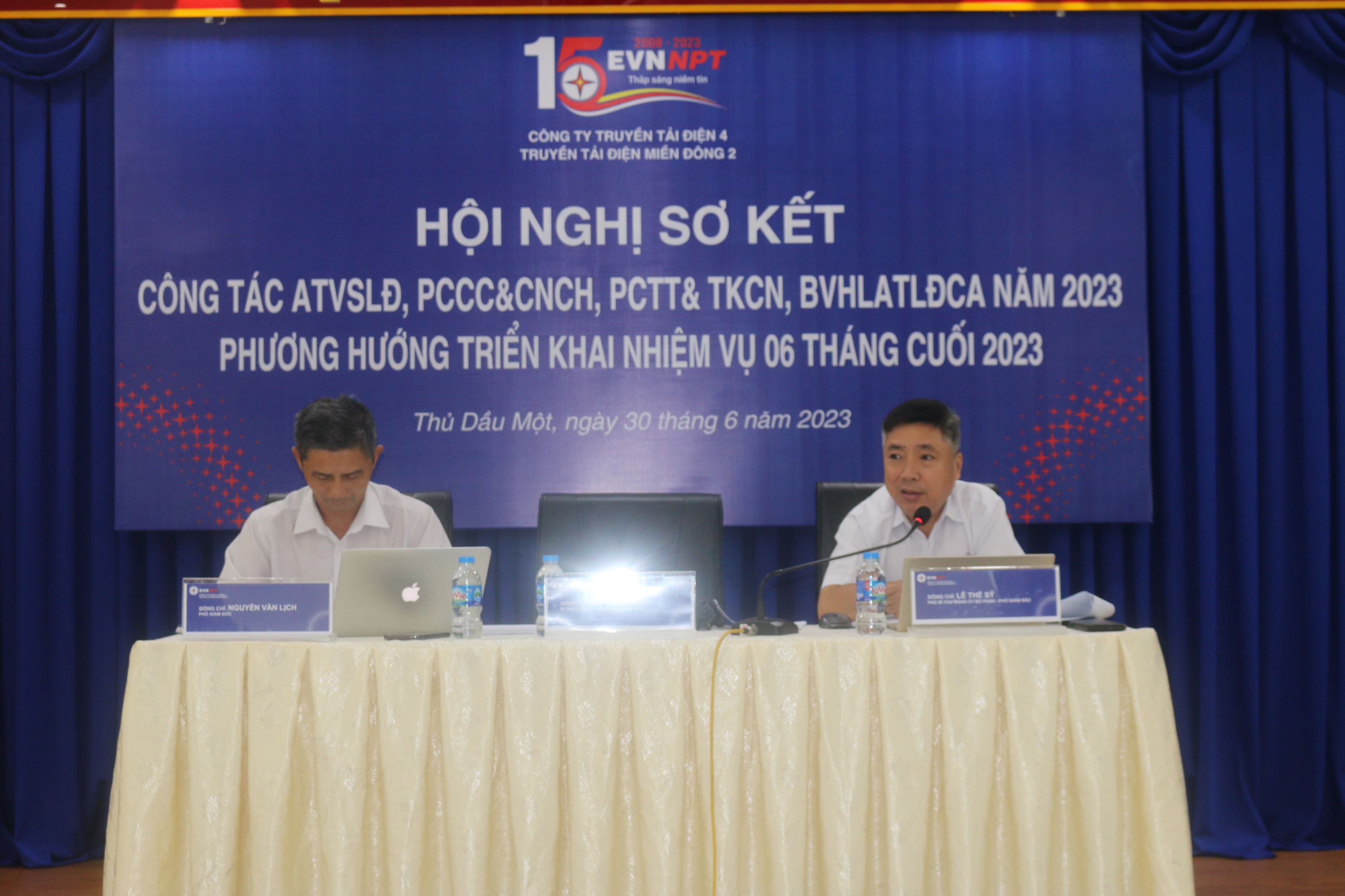 Mở đầu Hội nghị, đại diện Phòng Kỹ thuật báo cáo tóm tắt sơ lược công tác ATVSLĐ, PCCC&CNCH, PCTT&TKCN, BVHLATLĐCA 06 tháng đầu năm 2023. Huấn luyện, sát hạch Quy trình An toàn điện của EVN năm 2023 cho 228 CBCNV các đối tượng là CBAT, cán bộ kỹ thuật, lãnh đạo các Đội, trạm và tất cả CBCNV là các đối tượng trực tiếp sản xuất, nâng bậc an toàn cho 30 CBCNV Tổ, Đội, Trạm từ bậc 3 lên bậc 4 (14 người), bậc 4 lên bậc 5 (16 người) đủ điều kiện để thực hiện đảm nhiệm các chức danh trong PCT, LCT, tạo điều kiện thuận lợi cho CBCNV Tổ, Đội, Trạm trong công tác bàn giao, tiếp nhận hiện trường công tác. TTĐMĐ2 chú trọng các nội dụng thiết thực như: nhận diện mối nguy tại nơi làm việc và đề ra biện pháp kiểm soát, đánh giá rủi ro qua những hình ảnh thực tế để người lao động cơ bản nhận biết được những mối nguy, rủi ro tại nơi làm việc của mình; phân tích những hình ảnh sai sót tại hiện trường, những tình huống vi phạm công tác, phân tích các sai sót trong việc cấp phiếu công tác, lệnh công tác, thủ tục cho phép làm việc, các nguyên nhân TNLĐ trong ngành điện
