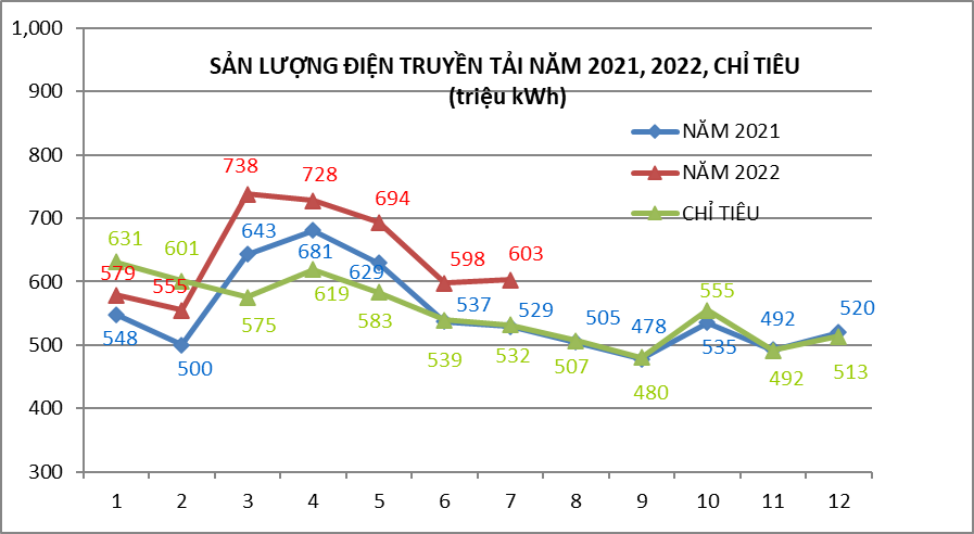 Biểu đồ sản lượng điện truyền tải năm 2022 so với 2021 và chỉ tiêu
