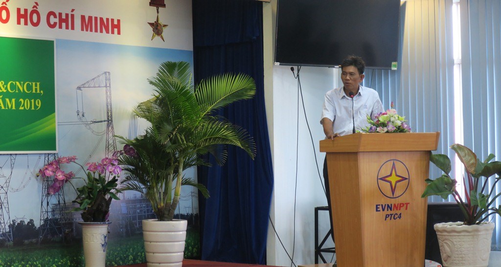 Ông Nguyễn Thiện Hùng, Đội phó phụ trách đội TTĐ Phú Lâm trình bày về giải pháp ngăn ngừa nguy cơ cháy hành lang đường dây.