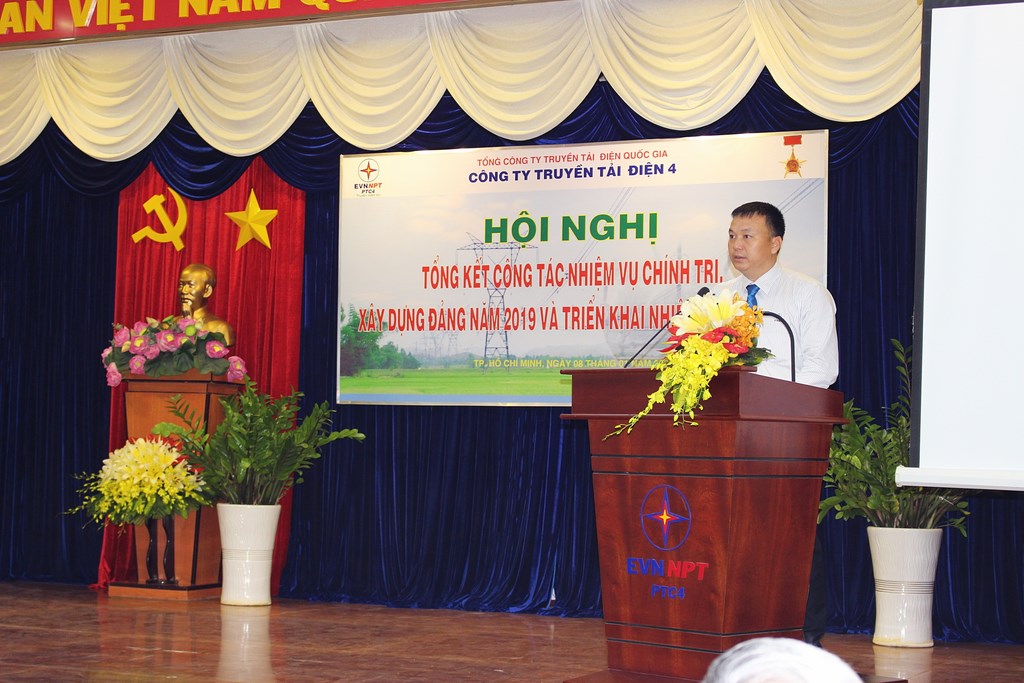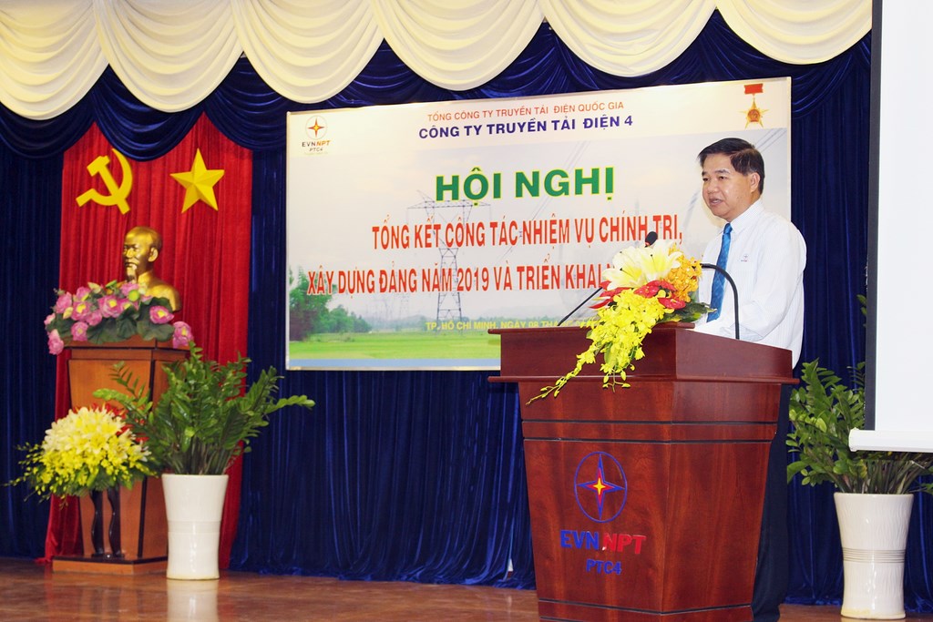 Thay mặt PTC4, đ/c Nguyễn Văn Hóa, Phó bí thư Đảng ủy, Phó Giám đốc Công ty đã báo cáo: Năm 2019, dưới sự lãnh đạo, chỉ đạo của Đảng ủy Tổng công ty, Đảng ủy PTC4 đã triển khai thực hiện các Nghị quyết của Trung ương và Đảng ủy các cấp và Nghị quyết số 4588/NQ-HDTV của HĐTV EVNNPT về các công việc và nhiệm vụ quan trọng cần tập trung triển khai thực hiện trong năm 2019. Xây dựng chương trình công tác Đảng năm 2019 để thực hiện các Nghị quyết, chị thị của Đảng ủy cấp trên. Ban hành 02 nghị quyết chuyên đề, ban hành 17 Kế hoạch thực hiện công tác bồi dưỡng chính trị, công tác thông tin, tuyên truyền biển, đảo và biên giới trên đất liền. Ban hành Quy chế công tác dân vận của Đảng bộ PTC4, Quy chế tiếp dân; triển khai chương trình kiểm tra, giám sát; triển khai thực hiện Chị thị 05-CT/TW của Bộ Chính trị; tổng kết thi hành Điều lệ Đảng nhiệm kỳ 2015 – 2020; thực hiện Quy chế bầu cử trong Đảng; ban hành 05 Chương trình hành động cho các mặt công tác năm 2019, góp phần để Đảng bộ kịp thời tổ chức thực hiện có hiệu quả các chủ trương của Trung ương, Đảng ủy cấp trên, hoàn thành tốt nhiệm vụ chính trị, công tác xây dựng Đảng, công tác lãnh đạo các đoàn thể.