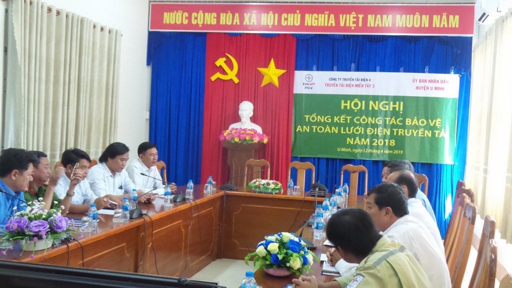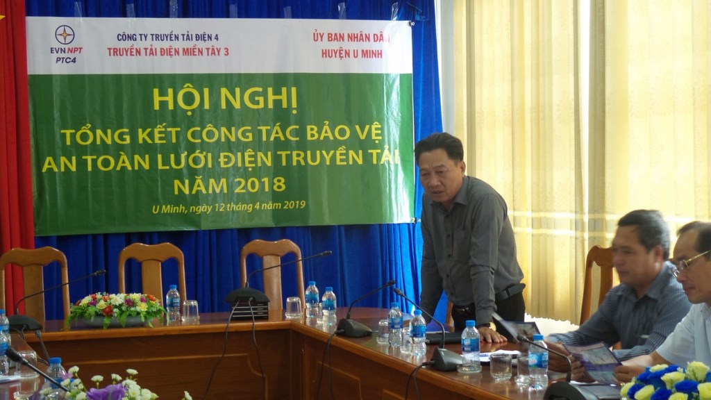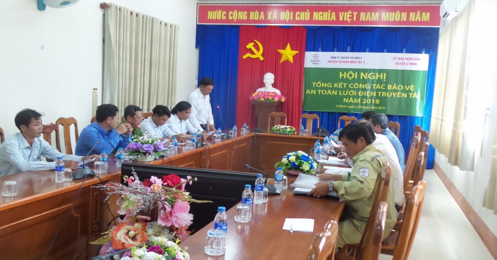 Tại hội nghị, Ông. Nguyễn Hữu Nhân – Đội trưởng Đội Truyền tải điện Cà Mau đã thông qua báo cáo tổng kết công tác bảo vệ hành lang an toàn lưới điện cao áp trên địa bàn tỉnh Cà Mau và huyện U Minh, nêu lên những thuận lợi và khó khăn trong công tác bảo vệ hành lang an toàn lưới điện cao áp năm 2018 trên địa bàn huyện U Minh và một số phương hướng cho các công tác bảo vệ hành lang lưới điện trong năm 2019. Theo đó, trên địa bàn tỉnh Cà Mau hiện TTĐMT3 đang quản lý vận hành 01 TBA 220kV Cà Mau với dung lượng 500 MVA và 04 tuyến đường dây 220kV được truyền tải nguồn từ Nhà máy điện Cà Mau (NMĐCM) cung cấp điện cho tỉnh Kiên Giang, Cà Mau, Bạc Liêu, Sóc Trăng, Cần Thơ, đó là Đường dây: 220kV NMĐCM – Ô Môn ( 4 mạch); 220kV NMĐCM- Bạc Liêu (2 mạch); 220kV NMĐCM – Rạch Giá (mạch 2&3); 220kV NMĐCM – Cà Mau 2 (2 mạch) với chiều dài 290 km đi qua địa bàn các huyện U Minh, Thới Bình và Tp. Cà Mau; trong đó lưới điện tại địa bàn xã Khánh An, huyện U Minh có TBA 220kV Cà Mau và 37 km của 04 tuyến đường dây truyền tải.