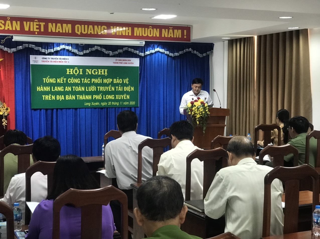 Tại hội nghị, Đ/c Hồ Trần Hải Đăng – Đội trưởng Đội Truyền tải điện Châu Đốc đã thông qua báo cáo tổng kết công tác bảo vệ hành lang an toàn lưới điện cao áp trên địa bàn tỉnh An Giang và Thành phố Long Xuyên, nêu lên những thuận lợi và khó khăn trong công tác bảo vệ hành lang an toàn lưới truyền tải điện trong năm 2020 trên địa bàn thành phố và một số phương hướng tiếp theo trong năm 2021 và những năm tiếp theo.