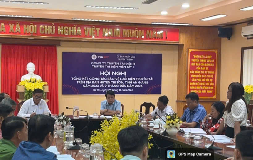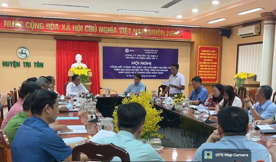 Lưới điện truyền tải đi qua trên địa bàn huyện Tri Tôn có 01 tuyến đường dây 220kV đi qua, với chiều dài hơn 18 km, đường dây có vai trò quan trọng trong công tác kết vòng cấp điện cho khu vực Tứ giác Long Xuyên và thành phố Phú Quốc. Trong nội dung báo cáo, ông Vinh nhấn mạnh trong năm 2023 và 09 tháng năm 2024, công tác phối hợp giữa ngành điện với các địa phương có đường dây đi qua trong khu vực huyện Tri Tôn được duy trì thường xuyên. Công tác tuyên truyền trong nhân dân được phổ biến rộng rãi, góp phần vào công tác đảm bảo lưới điện vận hành an toàn, ổn định liên tục, không có xảy ra sự cố do vi phạm hành lang. Được sự quan tâm, giúp đỡ của các ngành, đia phương trong năm qua đã giải quyết tốt công tác ngăn ngừa, loại bỏ các nguy cơ gây sự cố lưới điện tại địa phương. Tuy nhiên, thời gian gần đây do nhu cầu về phát triển kinh tế của từng họ gia đình đã chuyển đổi cây trồng từ trồng lúa sang cây ăn trái, cây lâu năm, chuyển mục đích sử dụng đất gần khu vực hành lang ngày càng phức tạp. Vì thế, cần có sự quan tâm quyết liệt hơn nữa trong công tác phối hợp bảo vệ lưới điện trong thời gian tới.
