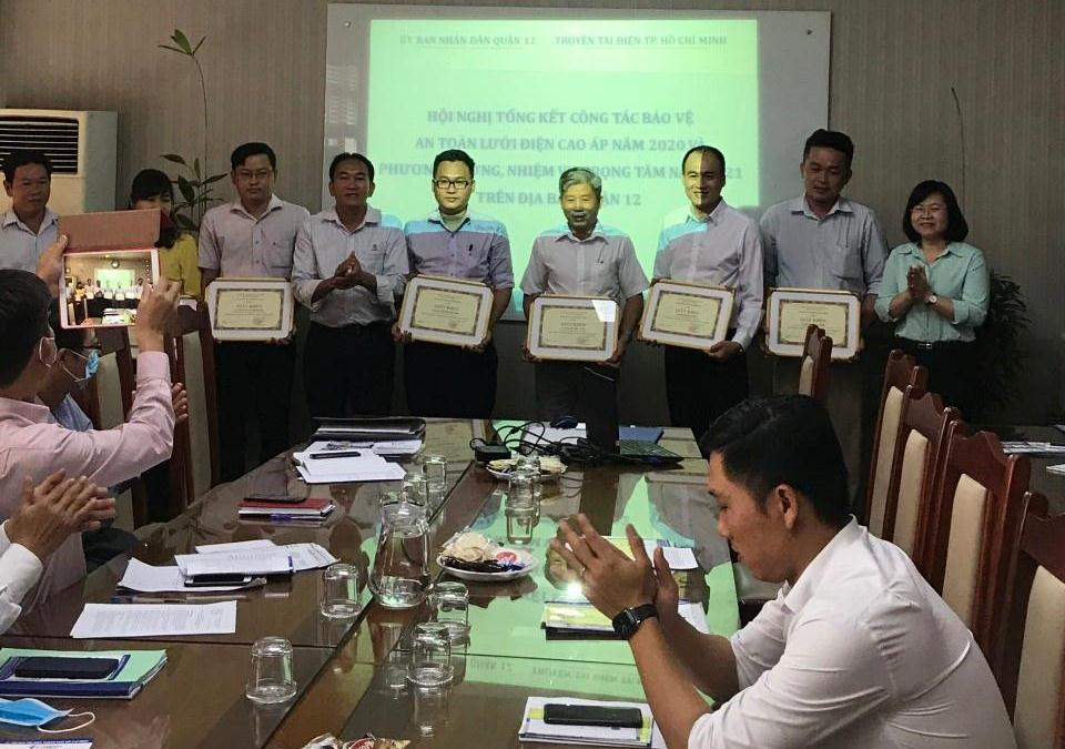 Tại Hội nghị cũng đã khen thưởng cho 01 tập thể, 05 cá nhân có thành tích tích cực trong công tác bảo vệ hành lang an toàn lưới điện cao áp trên địa bàn Quận 12 trong năm 2020.