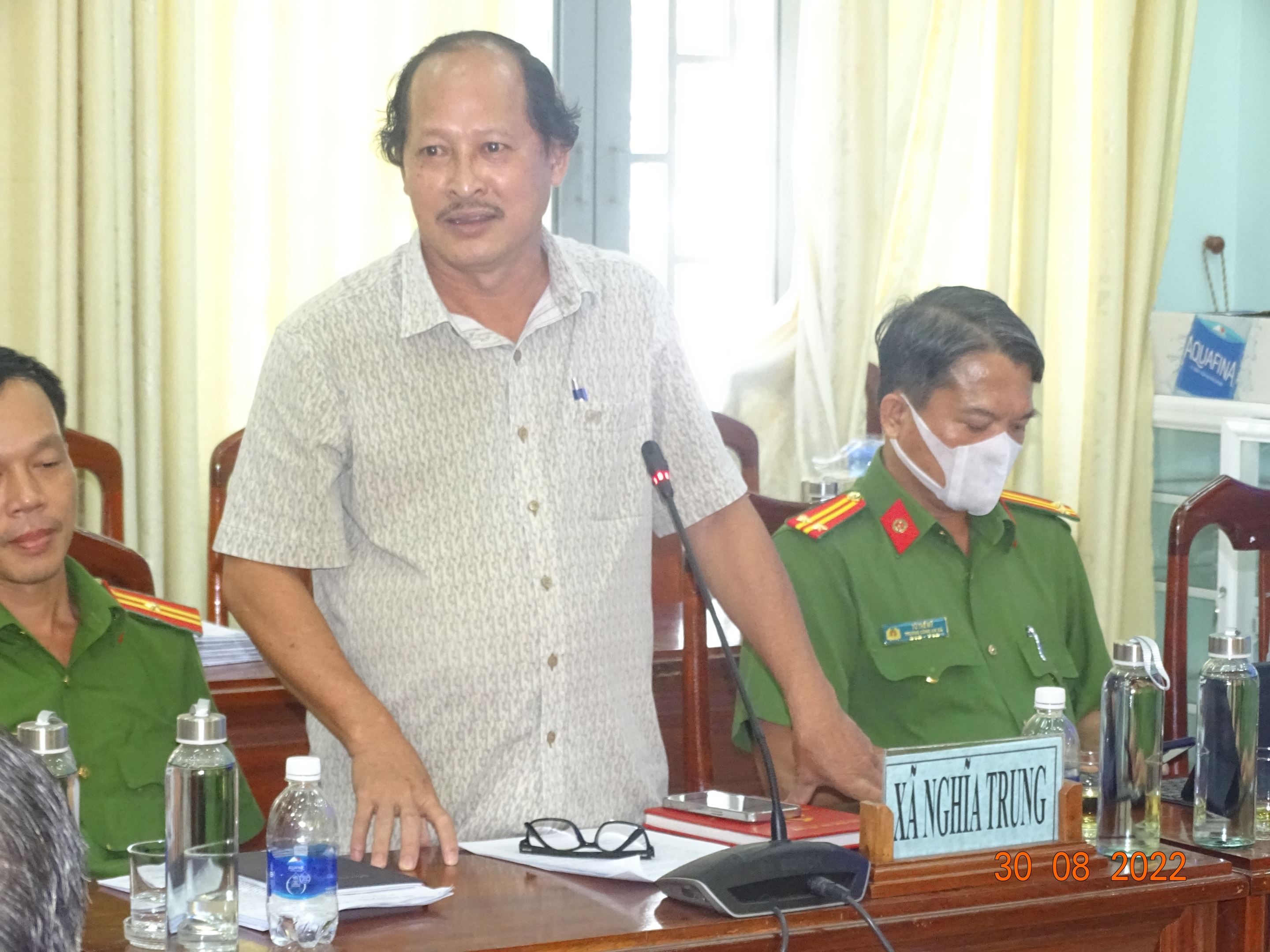 Ông Huỳnh Văn Thanh, Chủ tịch UBND xã Nghĩa Trung phát biểu tại hội nghị