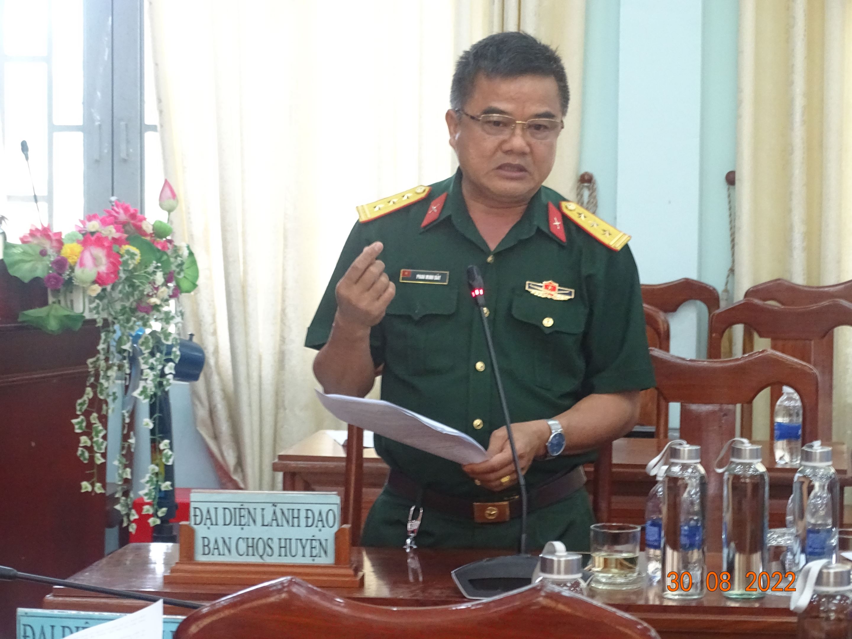 Thượng tá Phan Minh Bảy, chỉ huy trưởng Ban CHQS huyện Bù Đăng phát biểu tại hội nghị