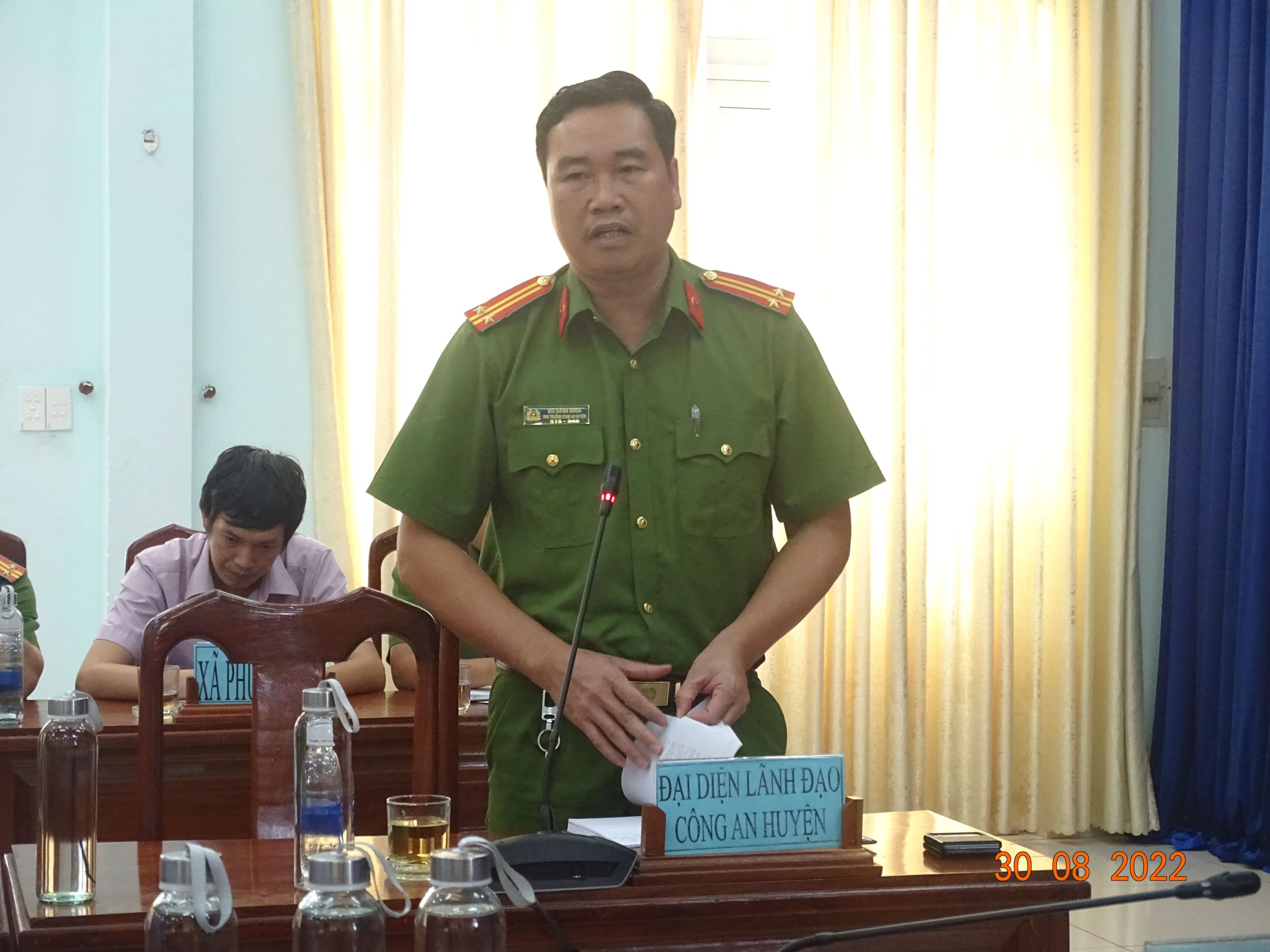 Trung tá Bùi Đăng Khoa, phó trưởng Công an huyện Bù Đăng phát biểu tại hội nghị