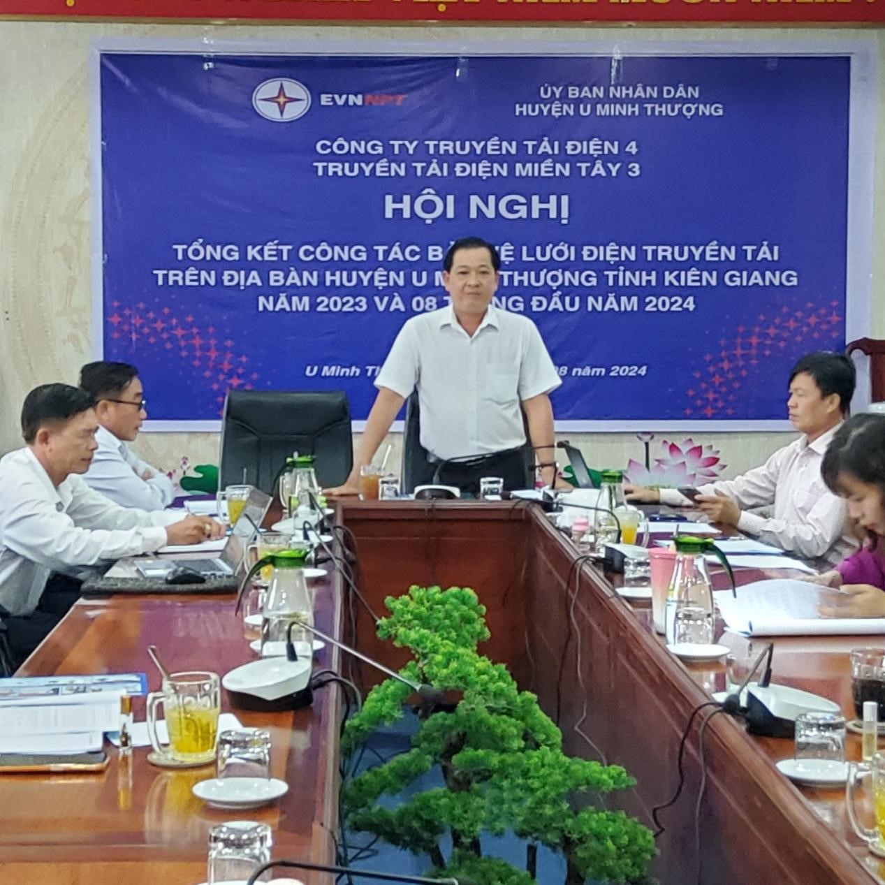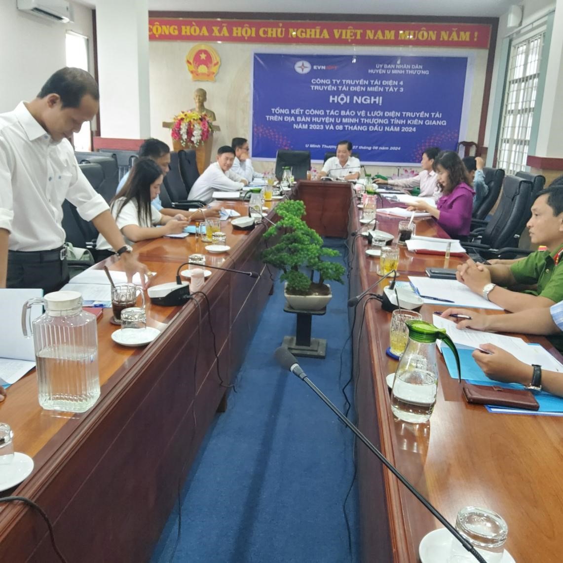 Nhằm tổng kết đánh giá công tác phối hợp bảo vệ hành lang an toàn lưới điện cao áp trên địa bàn huyện U Minh Thượng, cũng như đề ra phương hướng thực hiện trong thời gian tới, ngày 27/8/2024, tại hội trường UBND huyện U Minh Thượng, Truyền tải điện miền Tây 3 đã phối hợp với UBND huyện U Minh Thượng tổ chức thành công Hội nghị tổng kết công tác bảo vệ an toàn lưới điện cao áp năm 2023 và 8 tháng đầu năm 2024.