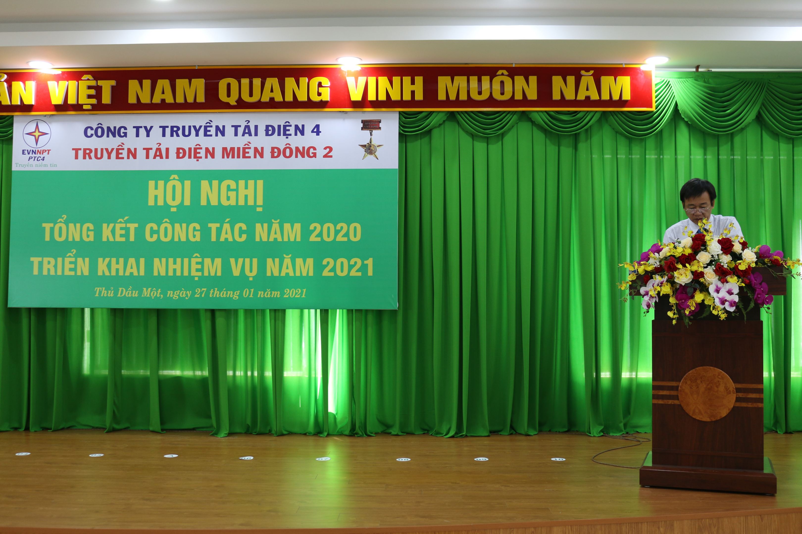 Phát biểu chỉ đạo tại Hội nghị, đ/c Nguyễn Văn Hóa, Phó bí thư Đảng ủy, Phó Giám đốc Công ty biểu dương tinh thần đoàn kết phấn đấu hoàn thành nhiệm vụ của tập thể CBCNV TTĐMĐ2 đã góp phần hoàn thành mục tiêu chung của Công ty trong giai đoạn 5 năm qua và trong năm 2020, kể cả trong công tác chuyên môn cũng như công tác Đảng. Đồng chí Nguyễn Văn Hóa mong muốn TTĐMĐ2 tiếp tục phát huy những thế mạnh, rút kinh nghiệm những vấn đề còn tồn tại để năm 2021 và những năm tiếp theo cùng với Công ty hoàn thành xuất sắc nhiệm vụ được giao, mục tiêu phải đạt được là đảm bảo vận hành an toàn, không để xảy ra sự cố chủ quan,đẩy mạnh ứng dụng khoa học công nghệ, tập trung thực hiện Chủ đề năm 2021 là chuyển đổi số nhằm giảm tối đa công tác báo cáo bằng giấy, đảm bảo tinh gọn quy trình xử lý công việc để tăng năng suất lao động.