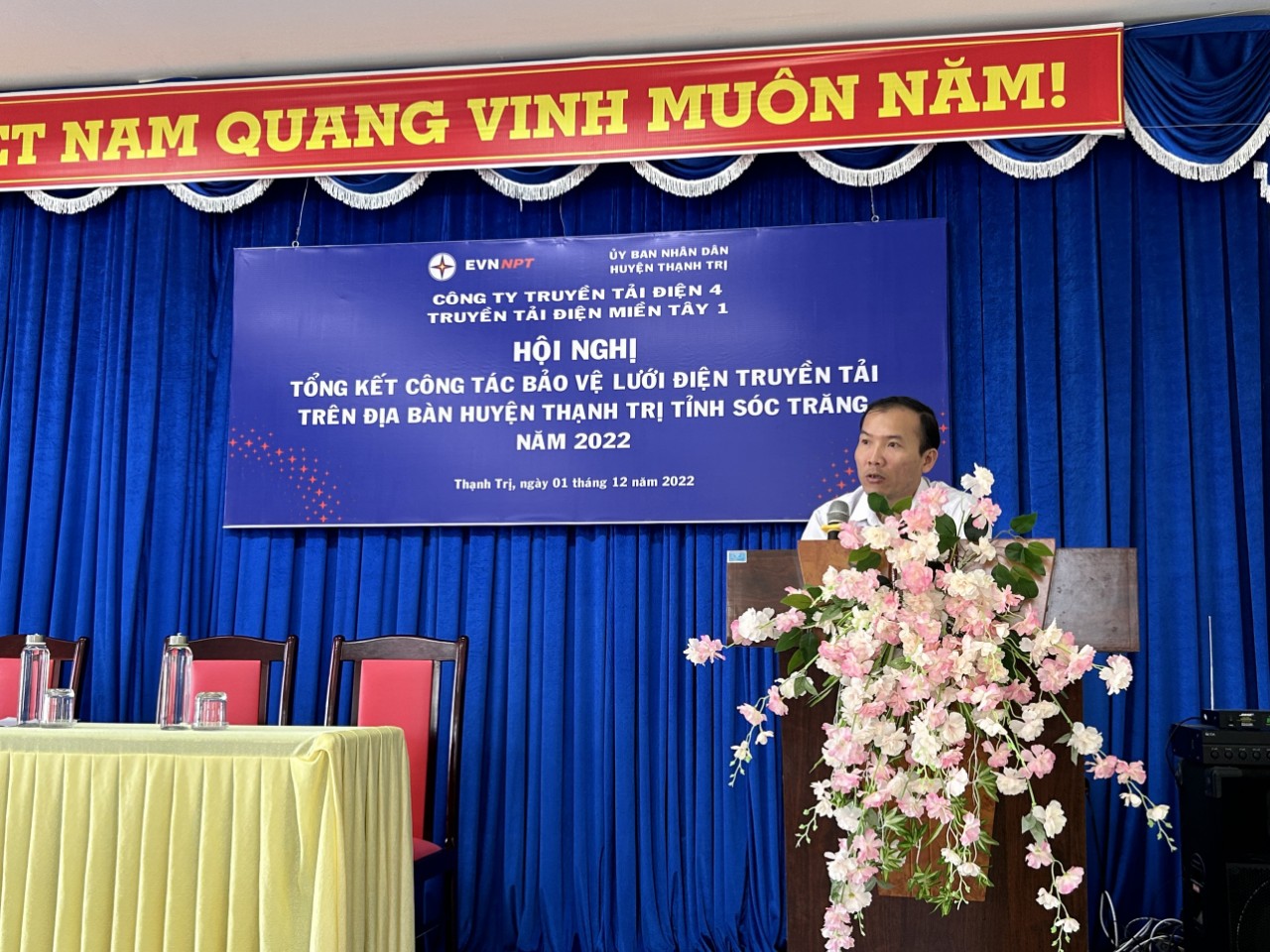Tại Hội nghị, ông Lê Quốc Hưng, đại diện Đội TTĐ Bạc Liêu - Truyền tải điện miền Tây 1 báo cáo tổng kết công tác tuyên truyền bảo vệ hành lang lưới điện truyền tải năm 2022 trên địa bàn huyện thạnh trị, cơ cấu hệ thống lưới điện cao áp trên địa bàn huyện Thạnh Trị, tỉnh Sóc Trăng cũng như các tồn tại liên quan đến công tác bảo vệ an toàn lưới điện truyền tải năm 2022 và phương hướng các tháng còn lại của năm 2022 và những năm tiếp theo. Báo cáo có kèm theo tờ rơi tuyên truyền bảo vệ hành lang an toàn lưới điện cao áp được gởi đến từng đại biểu tham dự hội nghị.