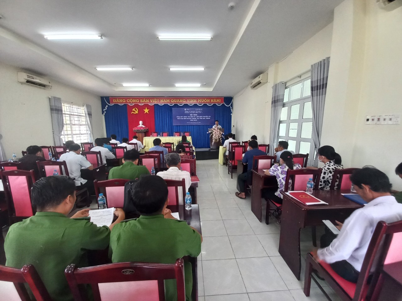 Ông Lê Quốc Hưng – Đội trưởng Đội TTĐ Bạc Liêu báo cáo tổng kết công tác tuyên truyền bảo vệ hành lang lưới điện truyền tải năm 2022 trên địa bàn huyện thạnh trị