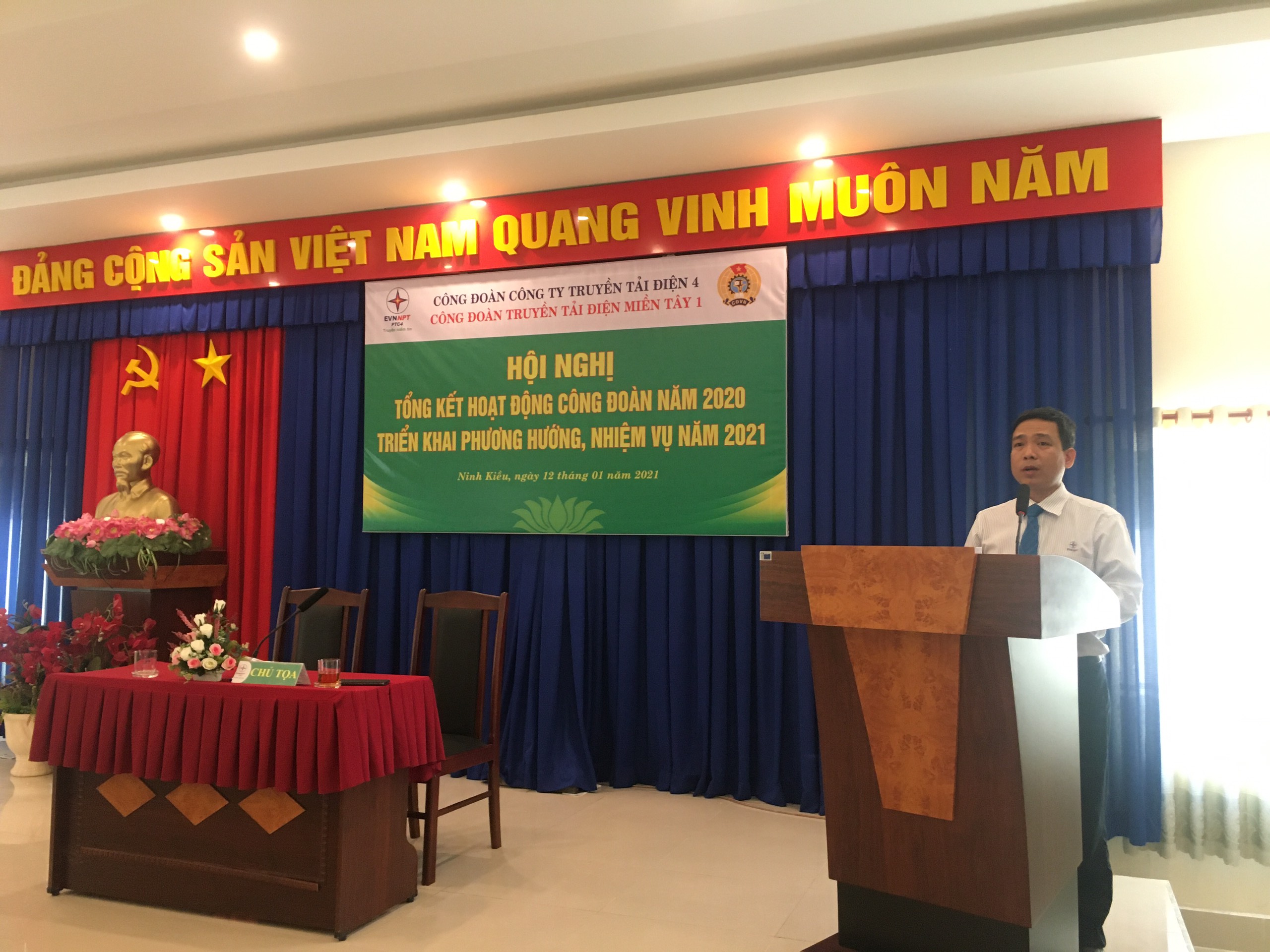Ông Nguyễn Trung Hiếu – Phó Chủ tịch Công đoàn TTĐ Miền Tây 1 trình bày Báo cáo tổng kết HĐCĐ năm 2020 và nhiệm vụ năm 2021.
