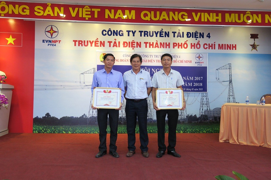 Kết thúc buổi Hội nghị, Công đoàn TTĐHCM đã công bố các quyết định khen thưởng của Công đoàn Tổng công ty Truyền tải điện Quốc gia, Công đoàn Công ty Truyền tải điện 4 và trao tặng bằng khen cho các tập thể, cá nhân có nhiều thành tích trong phong trào xây dựng tổ chức Công đoàn vững mạnh năm 2017.