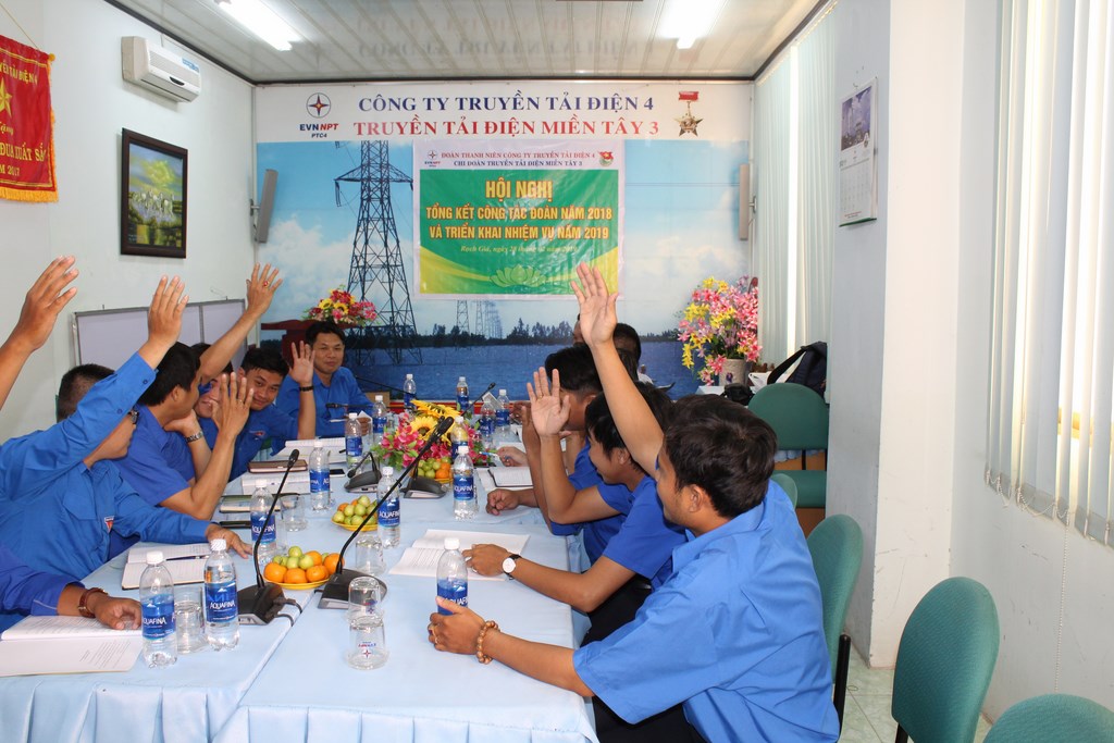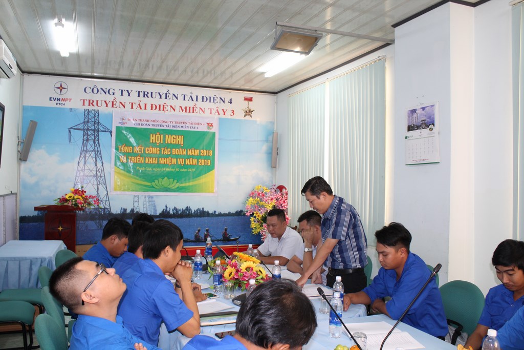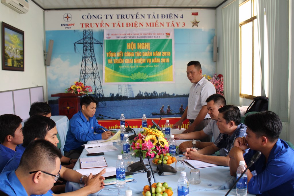 Được sự phân công, đồng chí Phan Hữu Lợi phó bí thư Chi đoàn báo cáo tổng kết công tác đoàn năm 2018 và phương hướng nhiệm vụ năm 2019. Trong năm 2018, Chi đoàn Truyền tải điện miền Tây 3 đã có nhiều nỗ lực đóng góp trong hoạt động sản xuất kinh doanh của đơn vị, tham gia nhiều hoạt động phong trào và đạt kết quả đáng khích lệ, đoàn viên hoàn thành nhiệm vụ sản xuất được phân công; thực hiện được 12 công trình thanh niên, 02 phần việc thanh niên, đóng góp có 07 sáng kiến, có 04 sáng kiến được duyệt cấp EVNNPT, 20 bài viết được đăng trên trang website của PTC4 và EVNNPT trong đoàn viên thanh niên. Công trình “Tuyên truyền bảo vệ hành lang an toàn lưới điện cao áp và an sinh xã hội” tại huyện Sóc Sơn, tỉnh Kiên Giang; công trình “Tham gia hưởng ứng chiến dịch Giờ Trái đất 2018” trên địa bàn Tp.Rạch Giá tỉnh Kiên Giang. Tuyên truyền với chủ đề “Go more green - Hôm nay tôi sống xanh hơn” tại thành phố Rạch Giá, Kiên Giang; phần việc thanh niên tổ chức “Lễ Dâng hương Giỗ tổ Hùng Vương” vào ngày mùng 10 tháng 3 âm lịch hàng năm, qua đó thể hiện tinh thần đại đoàn kết, đạo lý truyền thống tốt đẹp “Uống nước nhớ nguồn”, nhớ về tổ tông, về nghĩa “đồng bào” để cùng nhau làm nên sức mạnh Việt Nam...; phối hợp tham gia các hoạt động thể thao, các hoạt động đồng hành với thanh niên, công tác xây dựng Đảng... Thông qua hội nghị, với sự góp ý chân thành của các đại biểu tham dự, đã giúp Ban chấp hành nhận ra được vấn đề còn tồn tại, để từ đó có định hướng đúng đắn, tích cực và năng động hơn trong công tác Đoàn trong năm 2019.