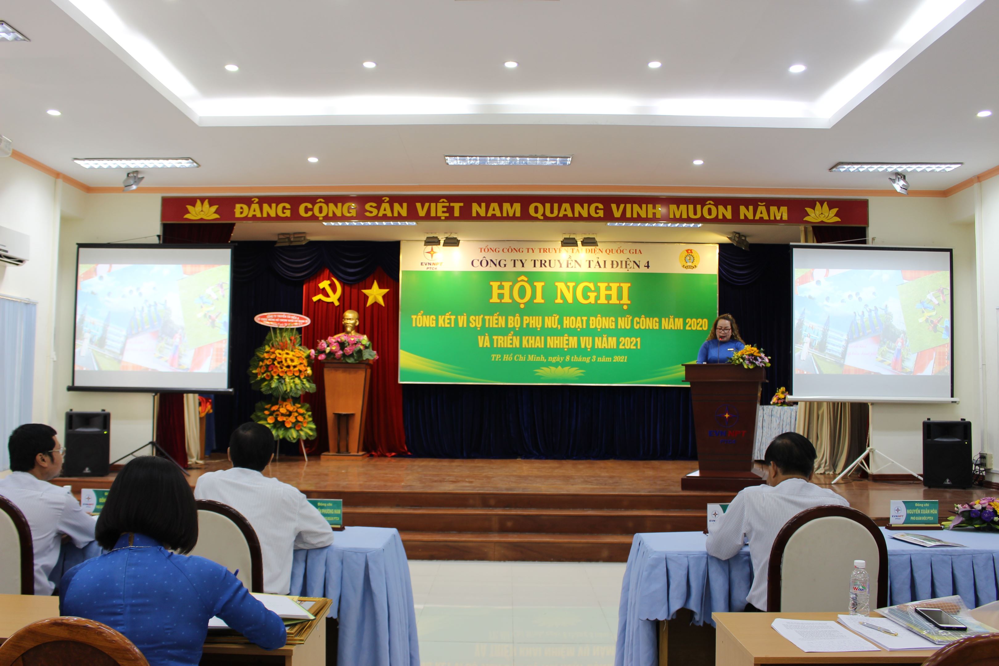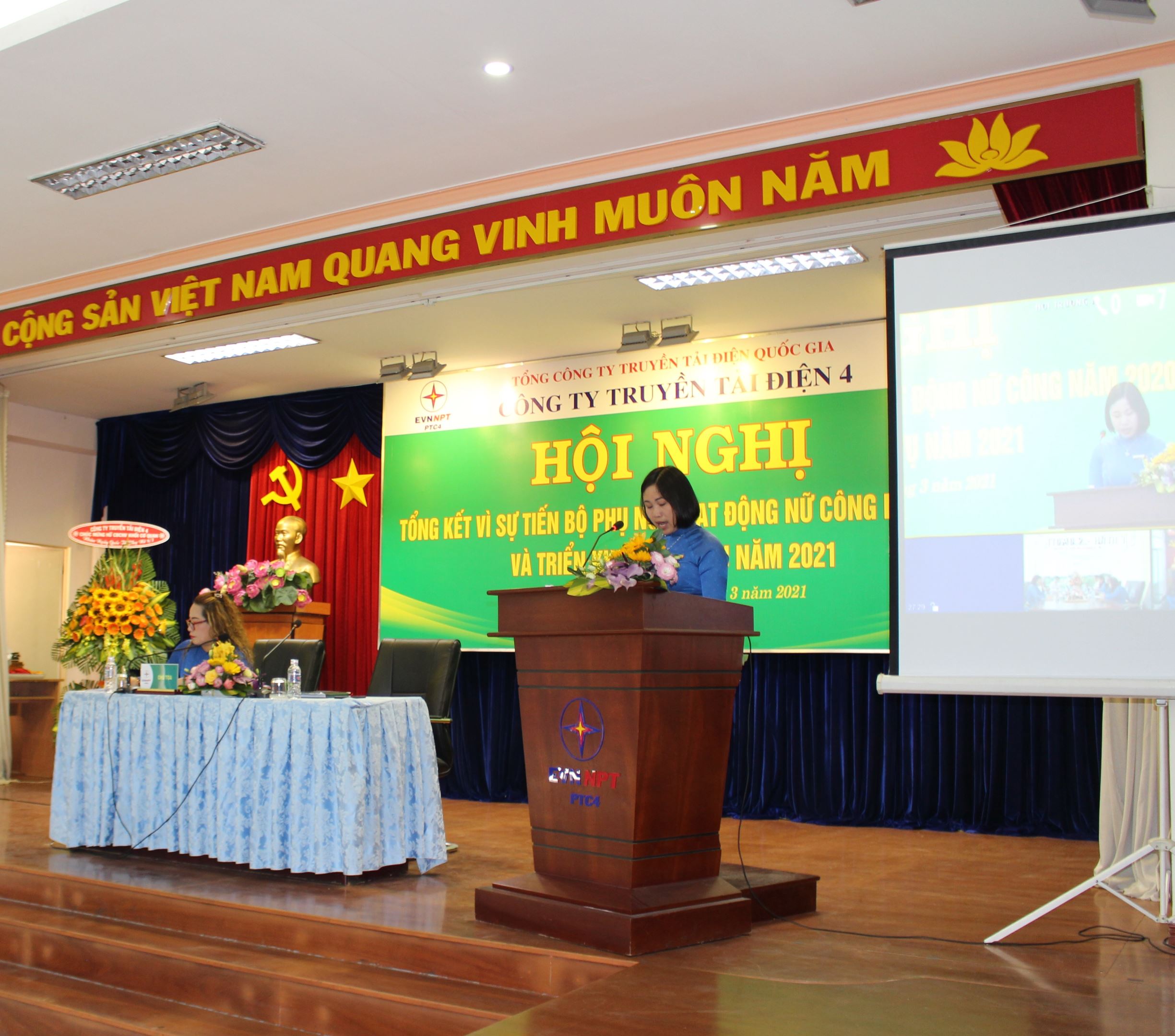 Tại Hội nghị, Bà Đào Thị Diệu Thúy - Phó Ban Nữ công báo cáo tổng kết hoạt động VSTBPN và công tác nữ công năm 2020, triển khai nhiệm vụ năm 2021.