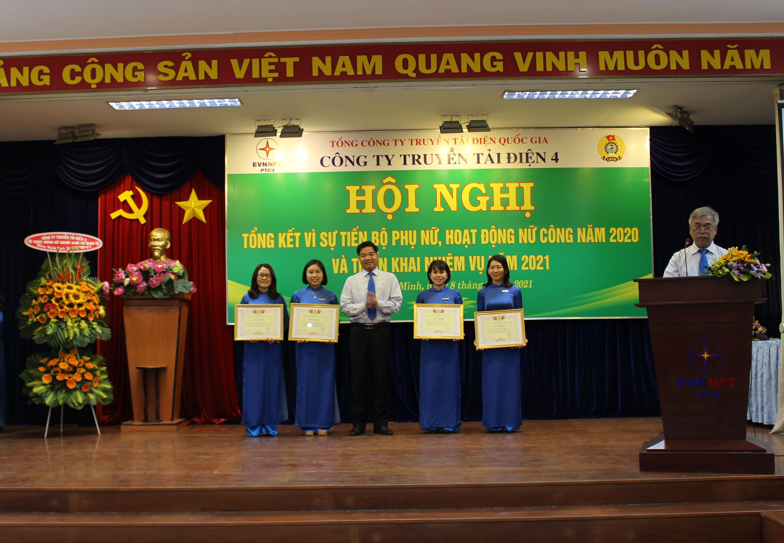 Ông Võ Đình Thủy, Bí thư Đảng ủy - Giám đốc Công ty trao giấy khen của Công đoàn EVNNPT cho các cá nhân đạt thành tích xuất sắc phong trào thi đua và hoạt động nữ công năm 2020.