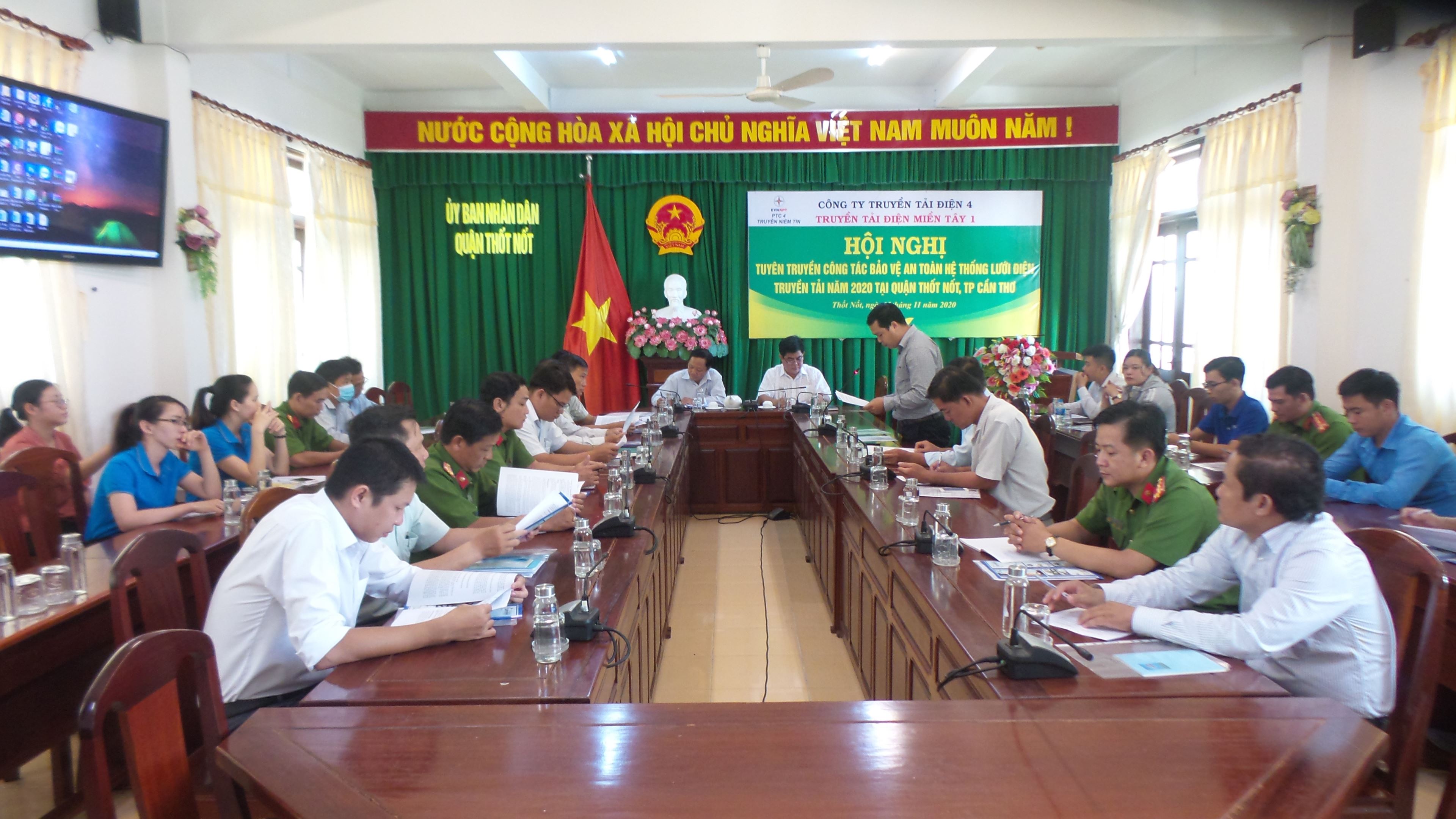 Đến dự Hội nghị, về phía UBND quận Thốt Nốt có đ/c Nguyễn Hữu Tặng - Phó Chủ tịch và Công An quận, Phòng Kinh Tế Hạ Tầng, Đài truyền thanh … và các đ/c đại điện cho UBND, công an các phường trên địa bàn quận. Về phía Truyền tải điện Miền Tây 1 có đ/c Huỳnh Văn Nam - Đội trưởng Đội truyền tải điện Ninh Kiều, đ/c Đoàn Minh Đệ - cán bộ hành lang và các đồng chí liên quan.