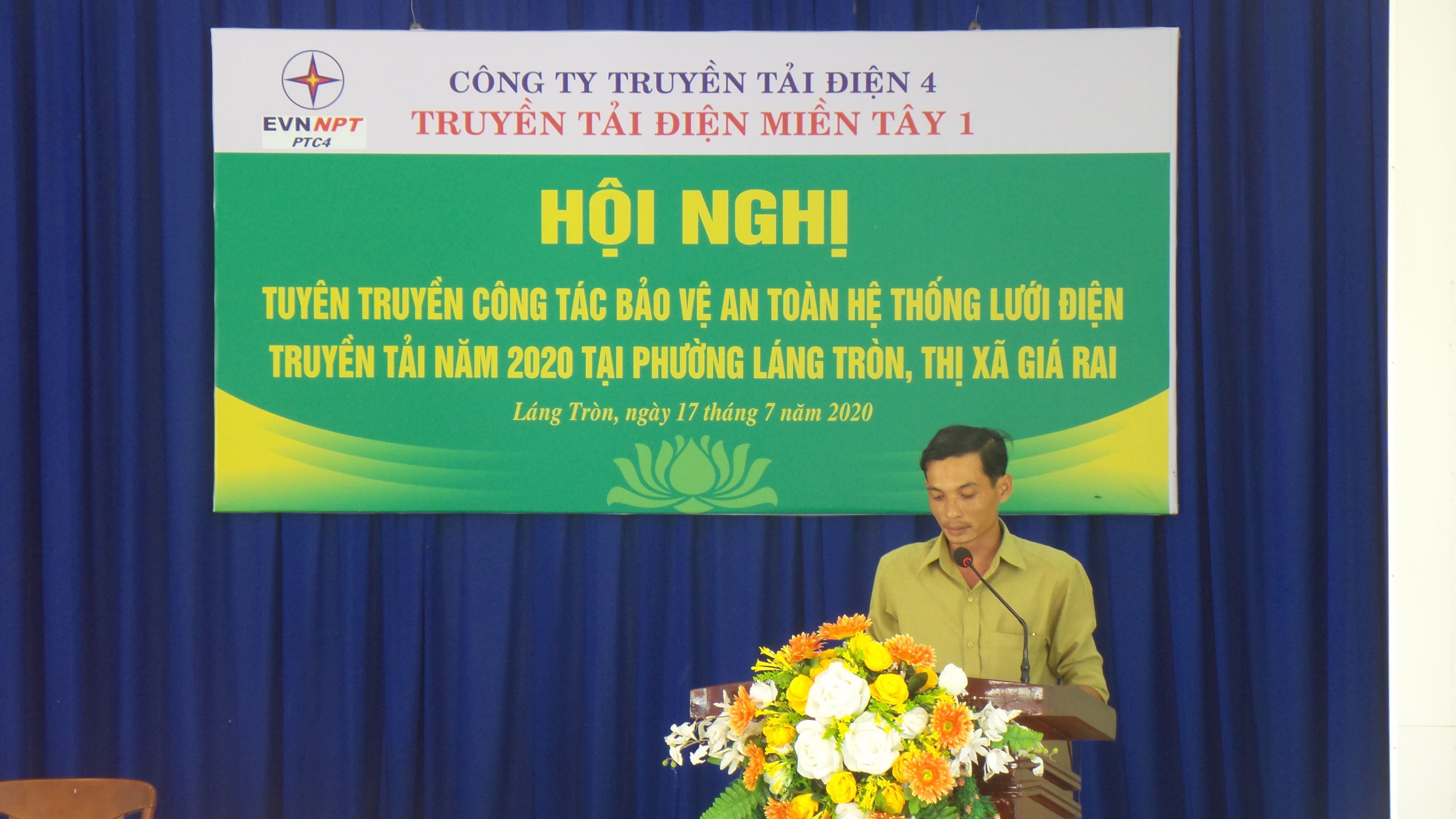 Tham dự Hội nghị có các đồng chí lãnh đạo Phường Láng Tròn: Đồng chí Lý Việt Kiều - Chủ tịch UBND, đồng chí Nguyễn Phước Duyên – Phó Chủ tịch UBND, đồng chí Phan Việt Khải – Trưởng Công an, các đồng chí là Trưởng khóm và hơn 60 người dân sinh sống dọc theo các tuyến đường dây. Về phía Truyền tải điện Miền Tây 1, có đồng chí Lê Quốc Hưng – Đội trưởng cùng các anh em công nhân thuộc Đội TTĐ Bạc Liêu.