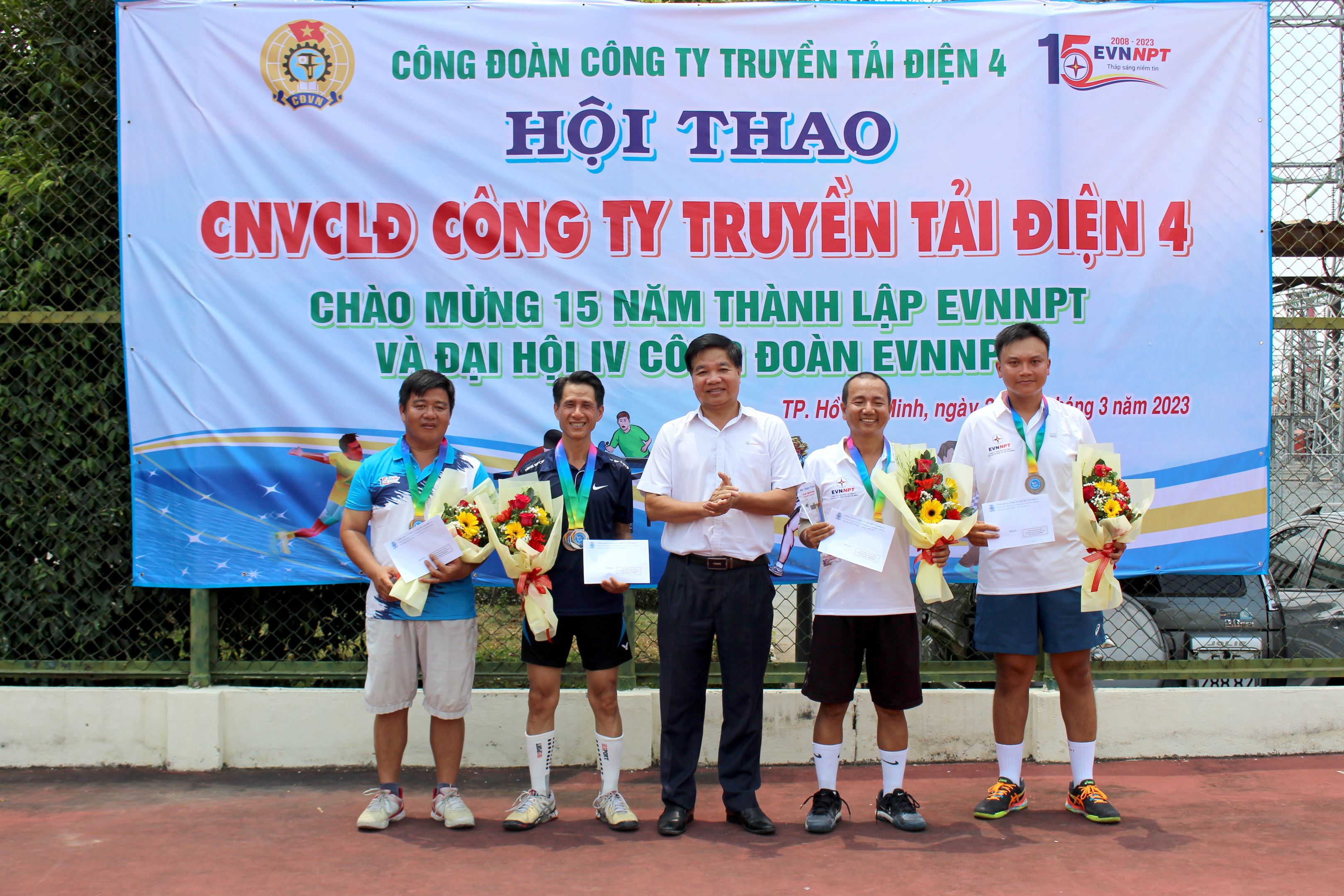 Ông Võ Đình Thủy, Bí thư Đảng ủy- Giám đốc Công ty trao giải Quần vợt Đơn nam dưới 45T