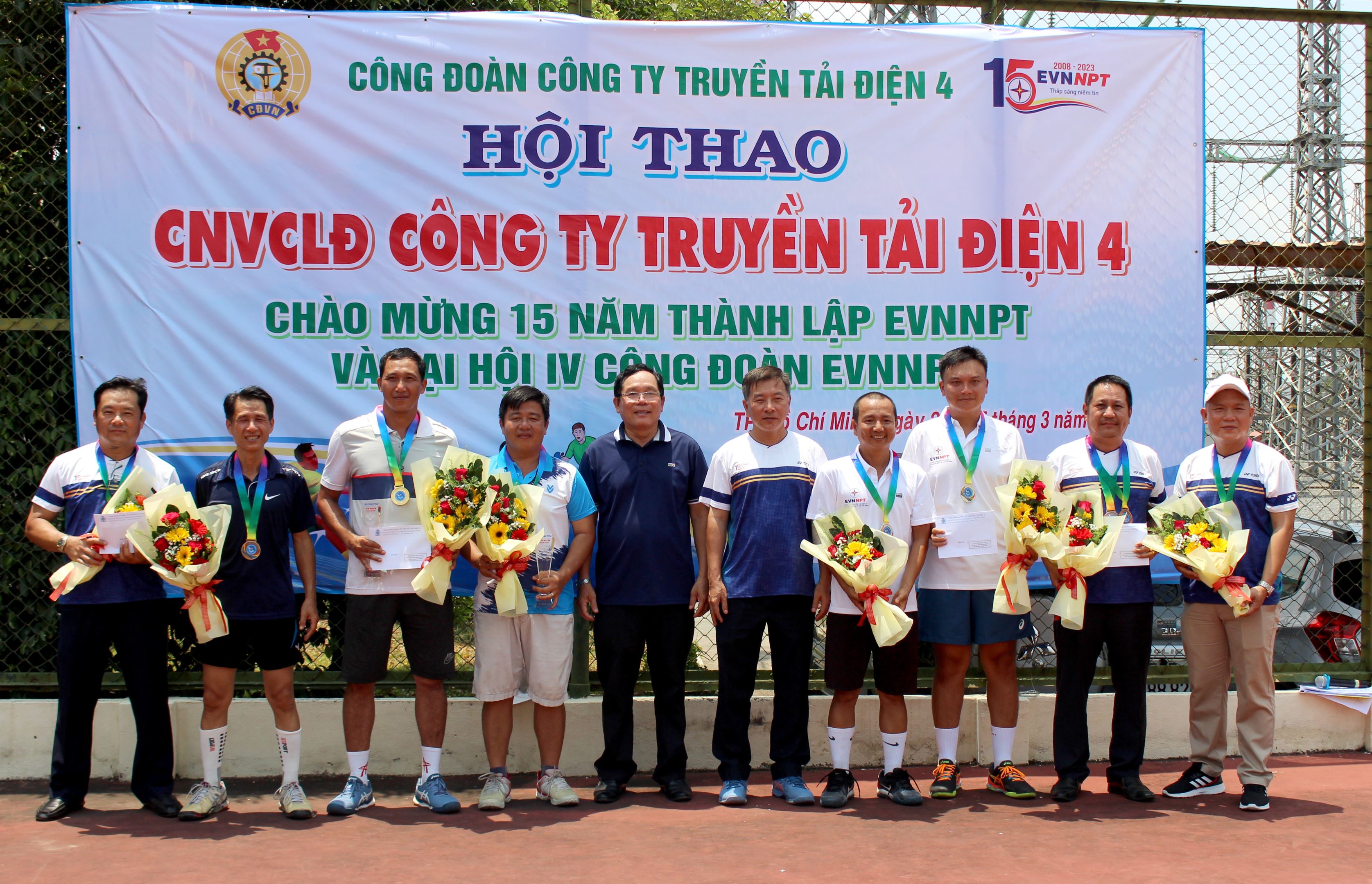 Ông Nguyễn Văn Lâm, nguyên Chủ tịch Công đoàn và Ông Nguyễn Văn Bảy, Phó Giám đốc- Phó Chủ tịch Công đoàn Công ty trao giải Quần vợt Đôi nam dưới 45T