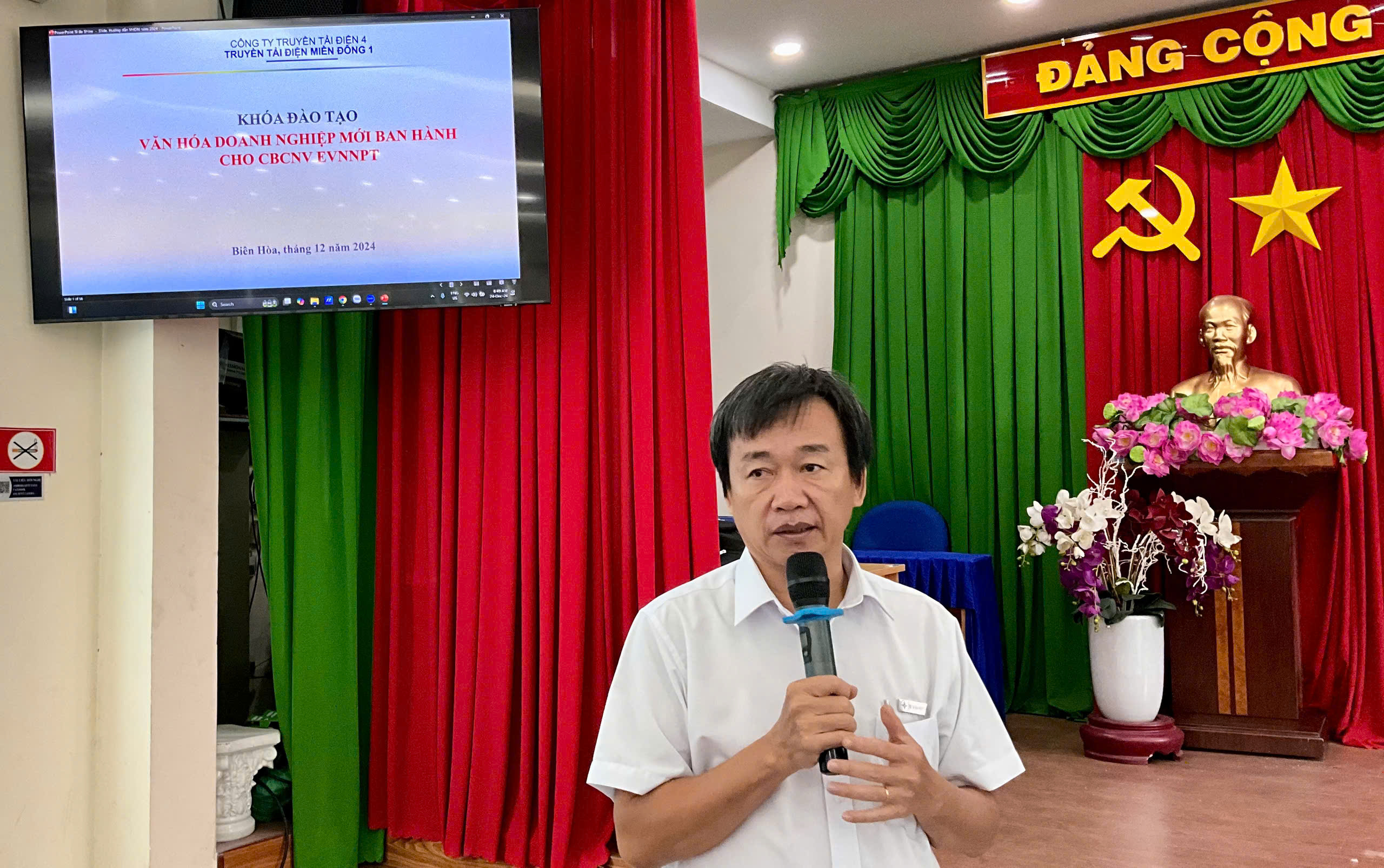 Để kế thừa, lan tỏa cũng như tiếp tục nghiên cứu và phát huy các giá trị của Văn hóa EVN vào thực tiễn, Truyền tải điện Miền Đông 1 đã tổ chức tập huấn tài liệu Văn hóa EVN với sự tham dự trực tiếp của 75 cán bộ công nhân viên khối gián tiếp, trưởng các Trạm, Đội, Tổ TTLĐ, tổ trưởng Công đoàn; trực chính, trực phụ Trạm biến áp; cán bộ phụ trách công tác truyền thông VHDN, cán bộ phụ trách công tác hành lang, các cộng tác viên, các kỹ sư mới tuyển dụng và 203 CBCNV học trực tuyến qua nền tảng zoom. Trực tiếp bồi huấn khóa đào tạo là đồng chí Bí thư Đảng ủy bộ phận, giám đốc Nguyễn Minh Dũng. Chương trình đào tạo được triển khai cô đọng các nội dung chính như: Tổng quan chung về Văn hóa EVN, EVNNPT; Các đặc trưng tiêu biểu cho bản sắc văn hoá của EVN định hướng trong giai đoạn mới; Các nội dung cốt lõi của tài liệu văn hóa EVN; Các hệ giá trị cốt lõi và các nguyên tắc cơ bản của văn hóa EVN. Trong suốt khóa đào tạo, Giám đốc đặc biệt làm rõ và mô tả chi tiết về những hệ quả của việc không thực thi tốt các giá trị văn hóa; phân tích tổng quan về bộ Quy tắc ứng xử cũng như cách thực thi hiệu quả văn hóa EVN vào thực tiễn…