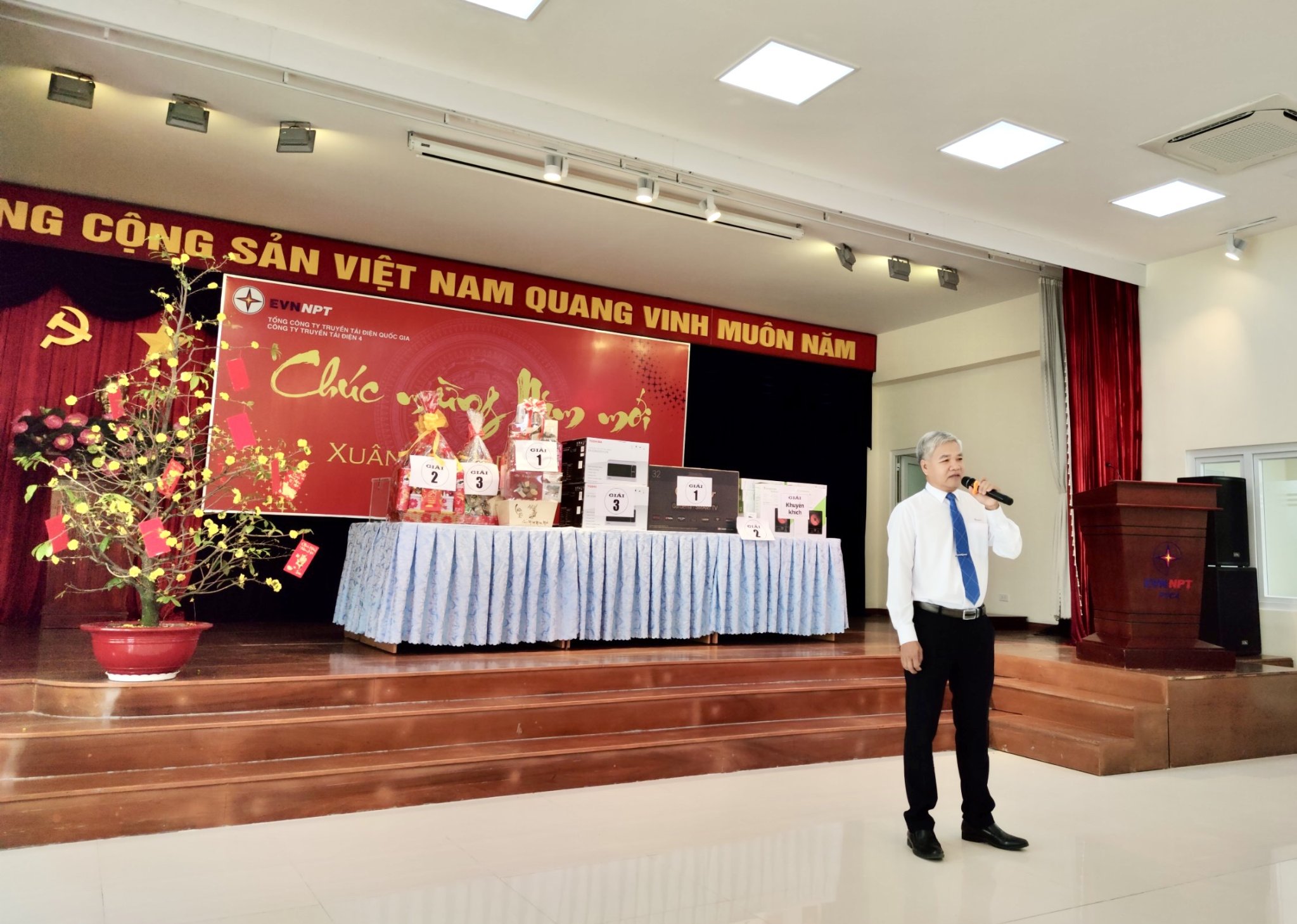 Phát biểu tại buổi họp mặt đầu năm Nhâm Dần 2022, ông Võ Đình Thủy, Bí thư Đảng ủy, Giám đốc Công ty đã bày tỏ lời cảm ơn sâu sắc đến toàn thể CBCNV Công ty: Năm qua là một năm với nhiều khó khăn mà chúng ta phải đối mặt do dịch bệnh Covid – 19 đã ít nhiều ảnh hưởng đến hoạt động của Công ty, nhưng chính hoàn cảnh đó đã khơi dậy ý chí đoàn kết gắn bó một lòng của tập thể Cán bộ công nhân viên và Lãnh đạo Công ty, mỗi người đều nhận thấy rõ hơn về trách nhiệm của mình trong việc thực hiện hoàn thành nhiệm vụ chung của Công ty và của Tổng Công ty Truyền tải điện Quốc gia. Tập thể CBCNV Công ty đã cùng nhau đồng lòng vượt qua những trở ngại, khó khăn trong hoạt động sản xuất, đặc biệt lực lượng vận hành đã có mặt 24/24 giờ tại các đội, trạm, dành toàn tâm toàn ý cho nhiệm vụ đảm bảo vận hành an toàn, ổn định, liên tục trong suốt thời gian thực hiện giãn cách xã hội, phòng chống dịch bệnh, đồng thời đã thực hiện tốt phương án đảm bảo vận hành an toàn trong các ngày nghỉ Tết Nguyên đán, góp phần hoàn thành xuất sắc nhiệm vụ chung của Công ty. Bước sang năm mới 2022, tập thể CBCNV Công ty tiếp tục phát huy tinh thần của năm trước, tiếp tục thực hiện các mục tiêu nâng cao năng lực quản trị, nâng cao chất lượng nguồn nhân lực, đẩy mạnh thực hiện văn hóa số, ứng dụng KHCN vào các mặt hoạt động sản xuất của Công ty. Thực hiện theo Chủ đề năm 2022 là “Thích ứng an toàn, linh hoạt và hiệu quả” là yêu cầu mọi hoạt động sản xuất đều phải được nâng lên ở mức “an toàn” cao hơn, luôn sẵn sàng các kịch bản để đáp ứng trong mọi điều kiện cho dù không thuận lợi, điều đó đòi hỏi các đầu mối công tác chỉ đạo điều hành phải linh hoạt ứng phó với các tình huống phát sinh, CBCNV cần phải sáng tạo bứt phá để vượt qua các rào cản trong tình hình mới. Bằng sức mạnh của một tập thể đoàn kết, gắn bó, trách nhiệm và tận tâm với nhiệm vụ được giao, tin tưởng rằng năm 2022 Công ty Truyền tải điện 4 sẽ tiếp tục hoàn thành xuất sắc nhiệm vụ.