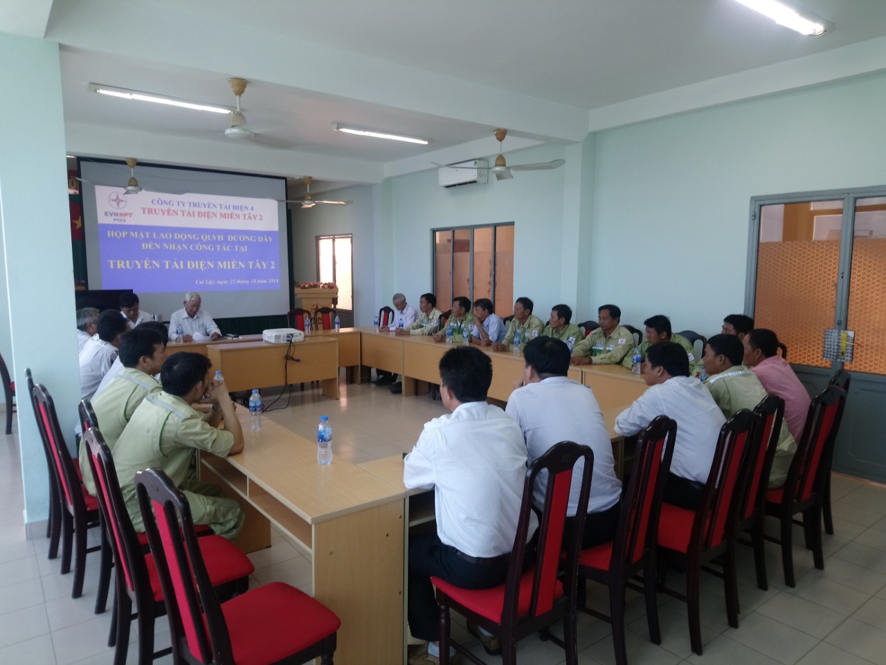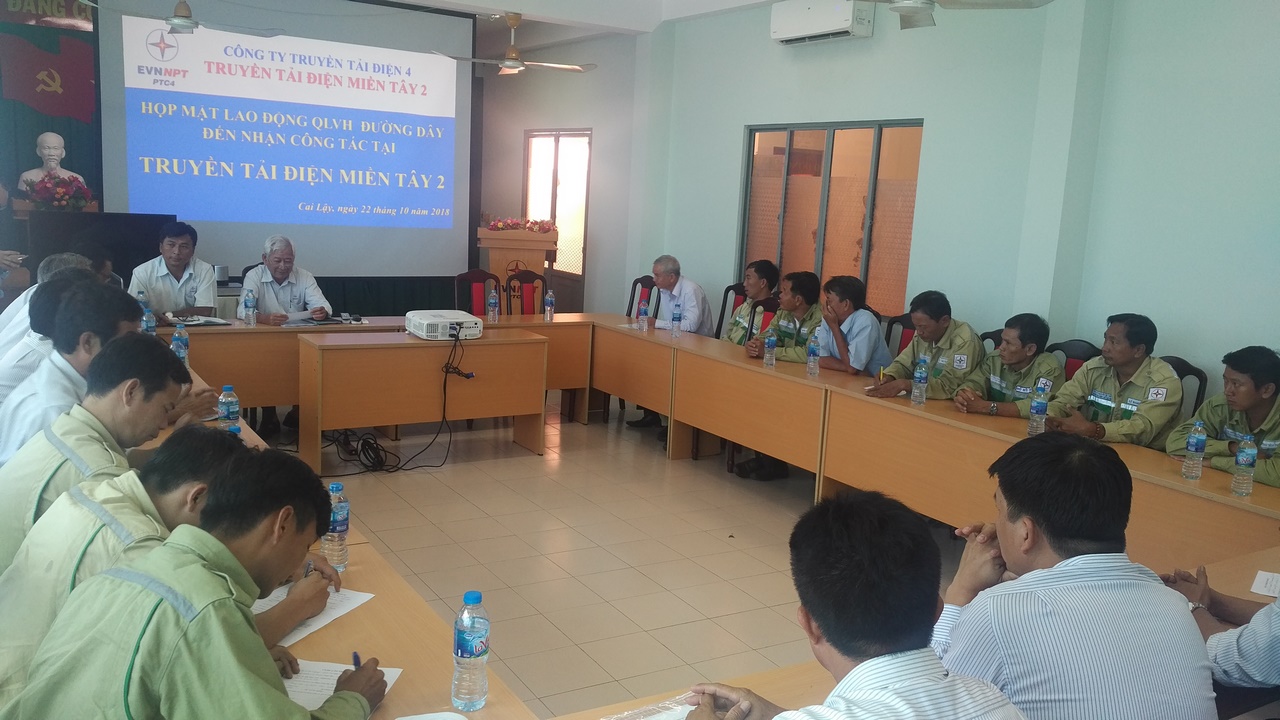 Để hiểu thêm nguyện vọng của các CBCNV quản lý vận hành đường dây sẽ nhận công tác tại TTĐMT2, đơn vị đã tổ chức gặp trực tiếp các CBCNV quản lý vận hành đường dây tại Hội trường gồm có : Ô.Nguyễn Văn Lạc đại diện Công đoàn Công ty TTĐ4; Ô.Nguyễn Quang Thảo (PGĐ, CTCĐ), Ô.Cao Trí Dũng (Phó Phòng Tổng hợp đại diện TTĐHCM; Ô.Nguyễn Văn Lịch (PGĐ), Nguyễn Văn Hoài (Trưởng phòng Tổng hợp ) đại diện TTĐMĐ1; Ô.Nguyễn Vỹ (PGĐ) đại diện TTĐMĐ2; Ô.Nguyễn Thuần Nhiên (Giám đốc), Ô.Nguyễn Văn Tuấn (PGĐ), Ô.Lê Văn Lắm (CTCĐ) đại diện TTĐMT2; cùng 16 CBCNV được chuyển đến TTĐMT2 công tác.