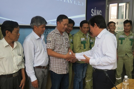 Đồng chí Bùi Văn Hoàng thay mặt PTC4 tặng quà cho các CBCNV