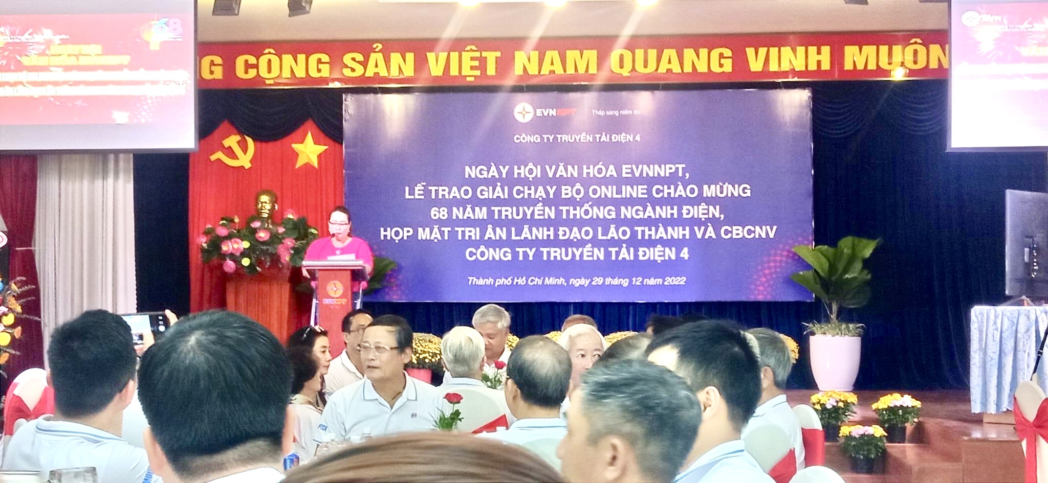 Tại buổi họp mặt, ông Võ Đình Thủy, Bí thư Đảng ủy, Giám đốc Công ty đã chia sẻ về kết quả hoàn thành nhiệm vụ kế hoạch của Công ty trong năm 2022, đánh giá về các mặt đã đạt được và chưa đạt được trong năm, biểu dương những công tác đã đạt thành tích xuất sắc trong năm. Năm 2022 là năm mà cả nước đang dần hồi phục sau khi trải qua thời gian ứng phó với bệnh dịch Covid-19; cùng với tình hình bất ổn của một số nước trên thế giới cũng đã ít nhiều ảnh hưởng đến hoạt động sản xuất của Công ty. Nhưng với sự quan tâm lãnh đạo của Tổng công ty Truyền tải điện Quốc gia (EVNNPT) và sự chỉ đạo sát sao của Ban lãnh đạo Công ty cùng với các ý kiến đóng góp của CBCNV đã giúp cho Công ty hoạt động ổn định và giữ vững lưới điện truyền tải vận hành an toàn, liên tục. Đó là minh chứng cho thấy truyền thống của PTC4 chính là tinh thần của một tập thể đoàn kết, là sức mạnh của ý chí luôn muốn vươn lên, là quyết tâm không ngại gian nan thử thách, là sẵn sàng ứng phó với mọi tình huống vẫn không chùng bước. Truyền thống đó đã được hun đúc từ các thế hệ CBCNV Công ty Truyền tải điện 4, là một trong những nét Văn hóa rất đáng tự hào mà EVNNPT đã không ngừng xây dựng, vun đắp.