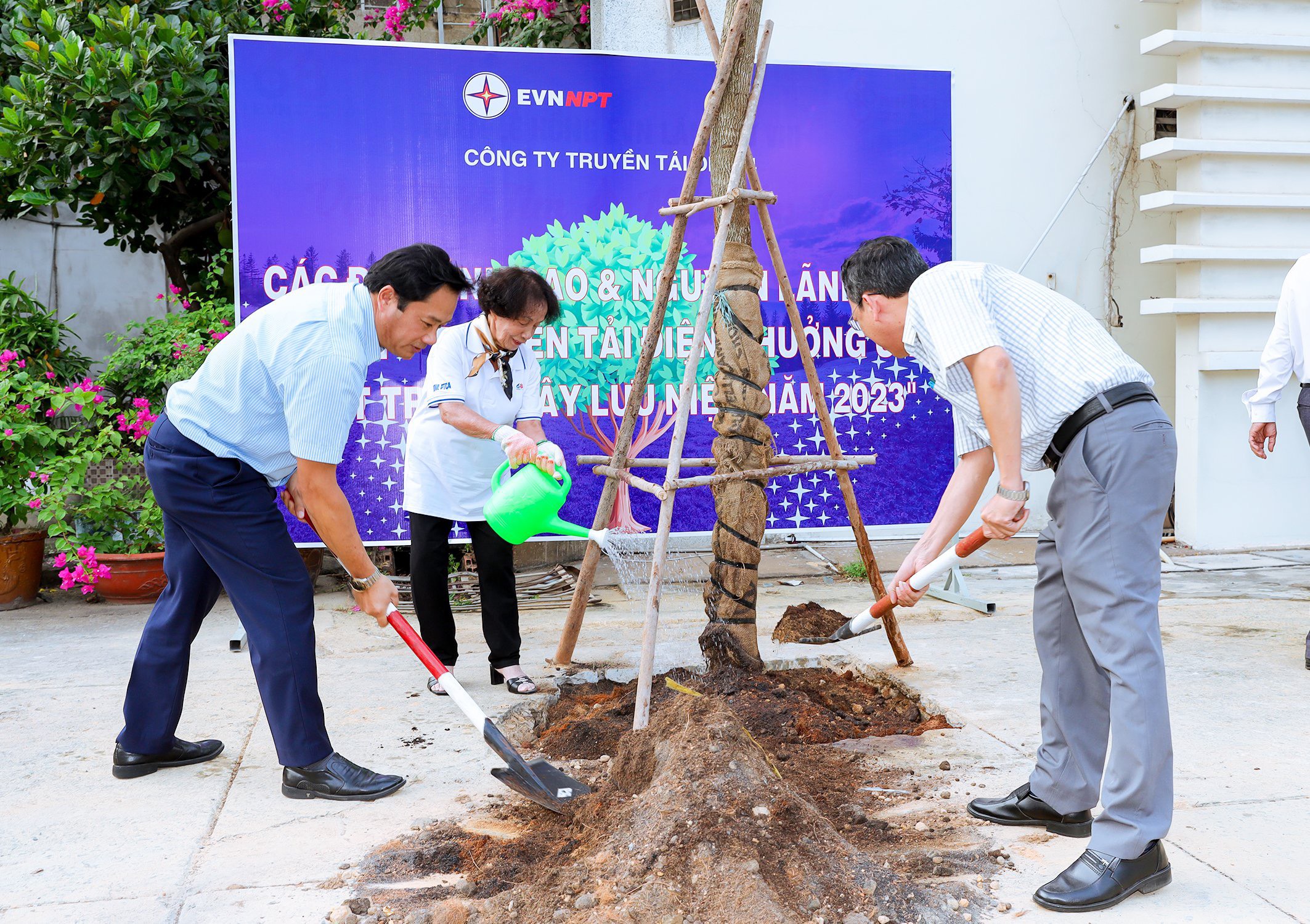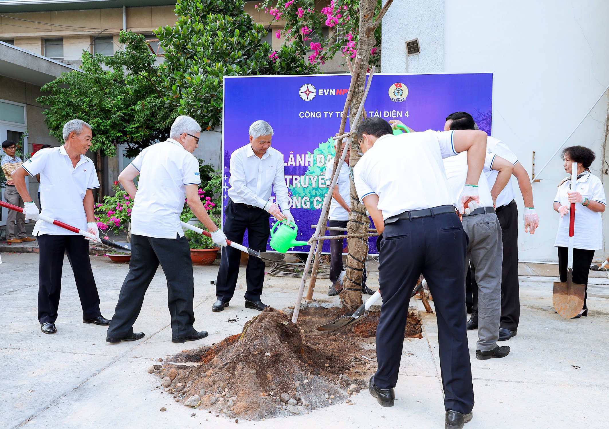 Lãnh đạo Công ty và các đồng chí Cán bộ lão thành tham gia trồng cây lưu niệm tại khuôn viên Công ty Truyền tải điện 4.