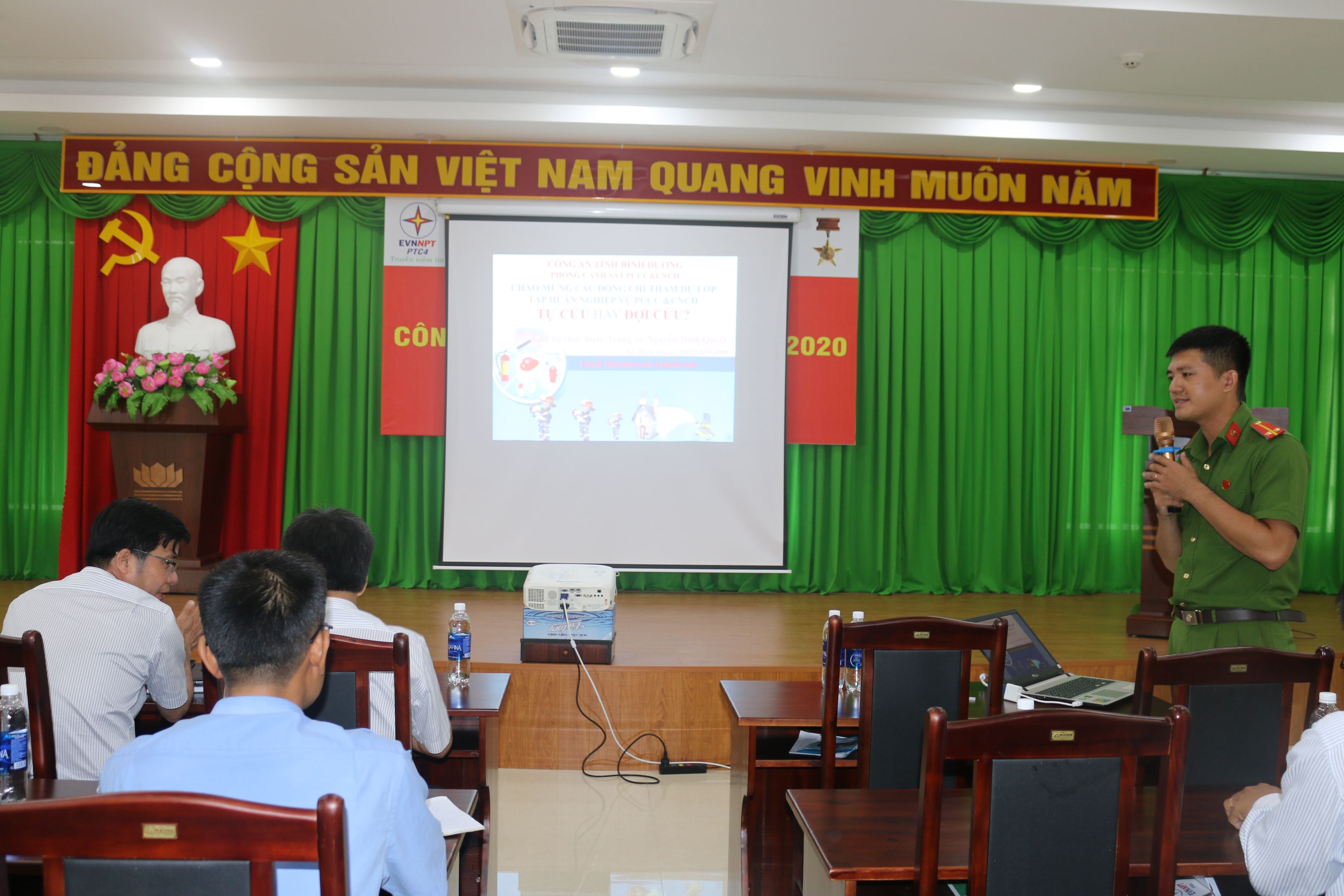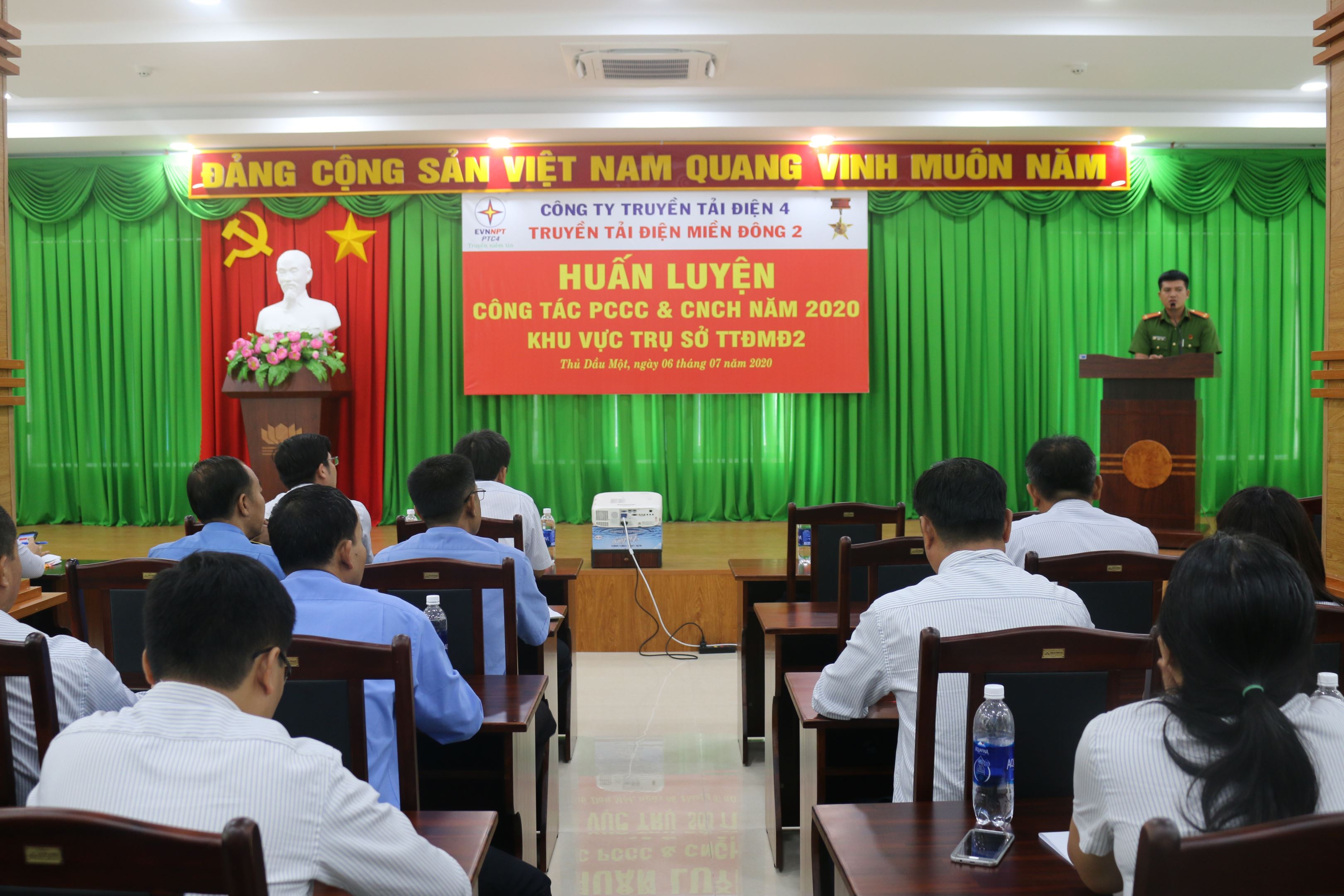 Tham dự huấn luyện có Trung úy Nguyễn Đình Quyết cùng 49 Cán bộ, công nhân viên, Đội viên Đội PCCC cơ sở thuộc Truyền tải điện Miền Đông 2 và lực lượng bảo vệ của Trung tâm dịch vụ kỹ thuật 4.