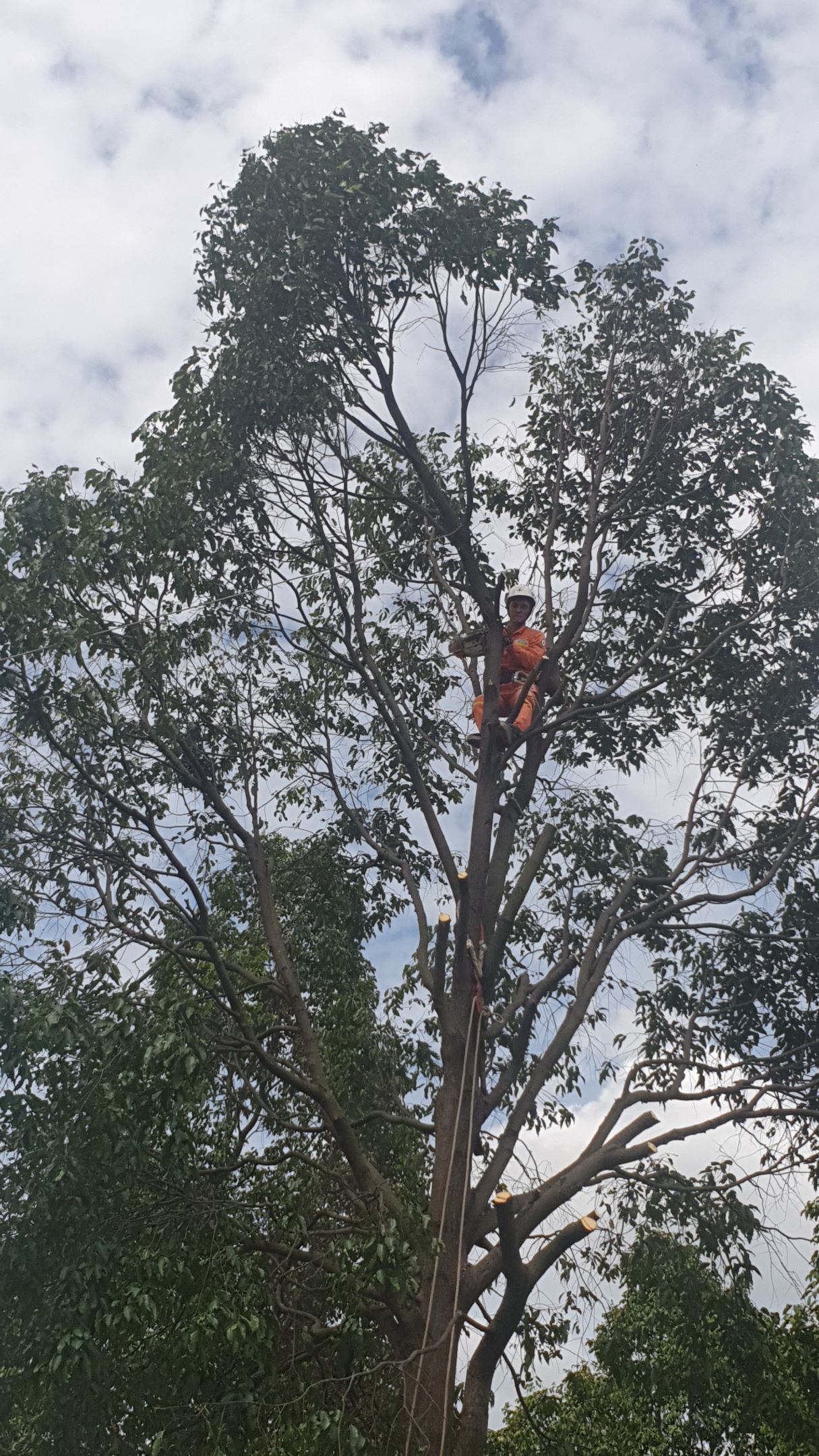 Các học viên thực hành chặt cây tại hiện trường.