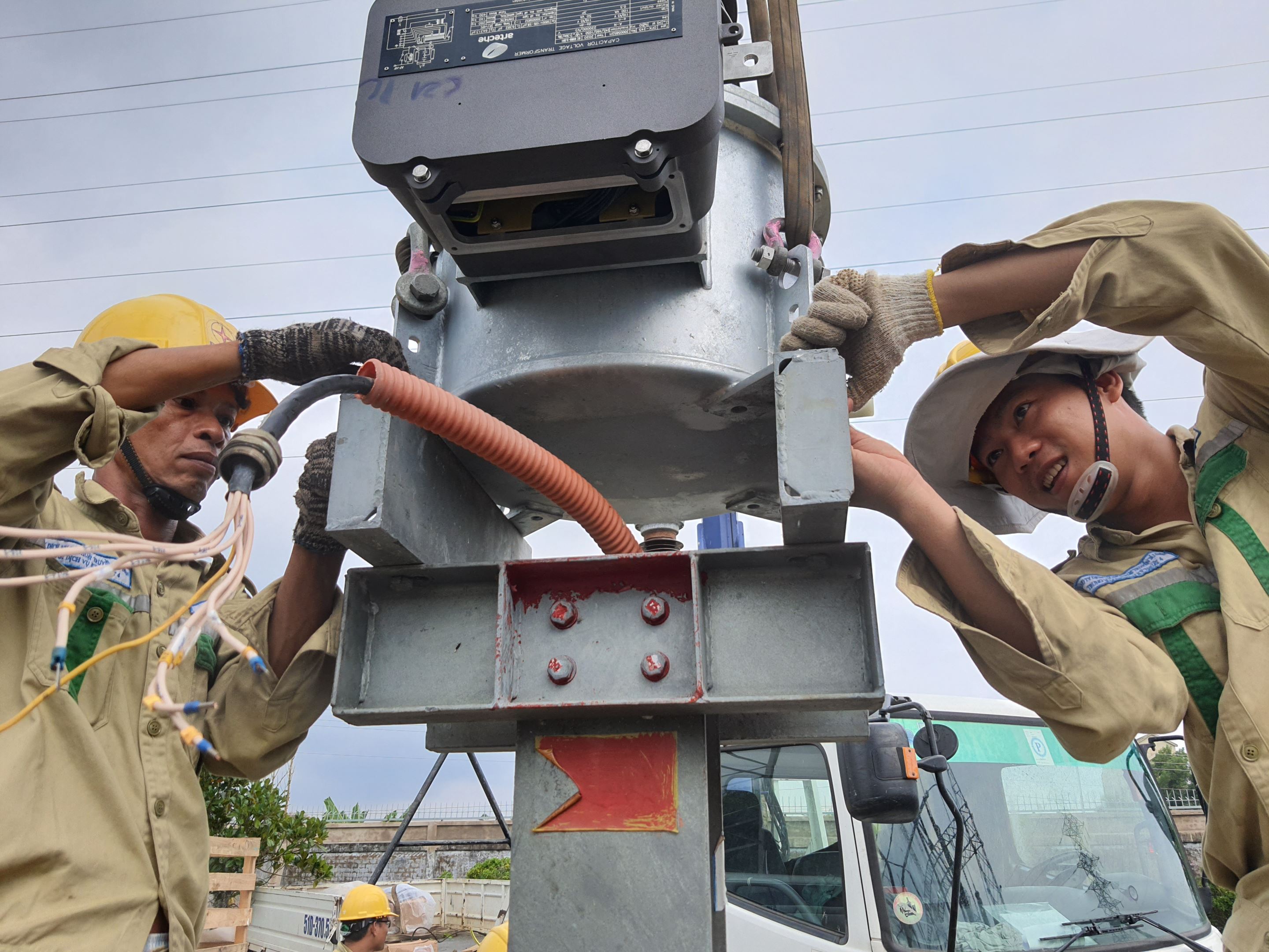Công đoạn lắp đầu cosse Công trình thay TU273 pha B trạm 220kV Sóc Trăng sắp hoàn thành