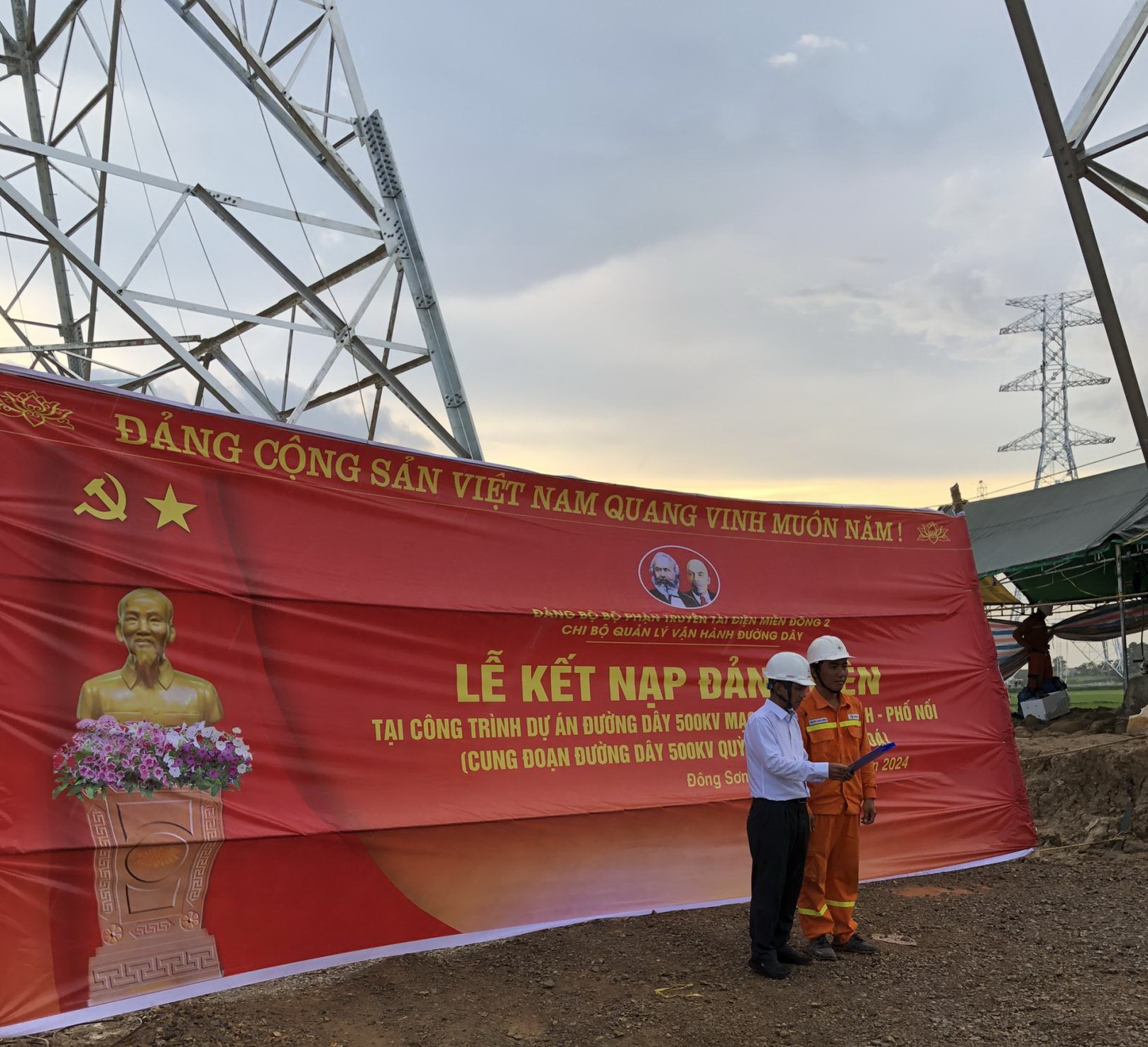 Chủ trì Lễ kết nạp đảng viên là đồng chí Nguyễn Văn Lịch - Bí thư Chi bộ quản lý vận hành đường dây - Phó giám đốc Truyền tải điện miền Đông 2, tham dự có đồng chí Huỳnh Hữu Phúc - Trưởng phòng kỹ thuật Công ty Truyền tải điện 4 và hơn 10 đảng viên trong chi bộ đang tham gia công tác tại công trường, buổi lễ còn vinh dự có các đồng chí Ủy viên Ban chấp hành xã Đông Ninh, Đông Sơn tỉnh Thanh Hóa, đứng đầu là đồng chí Lê Khắc Hiệp - Bí thư Đảng ủy đến tham dự.