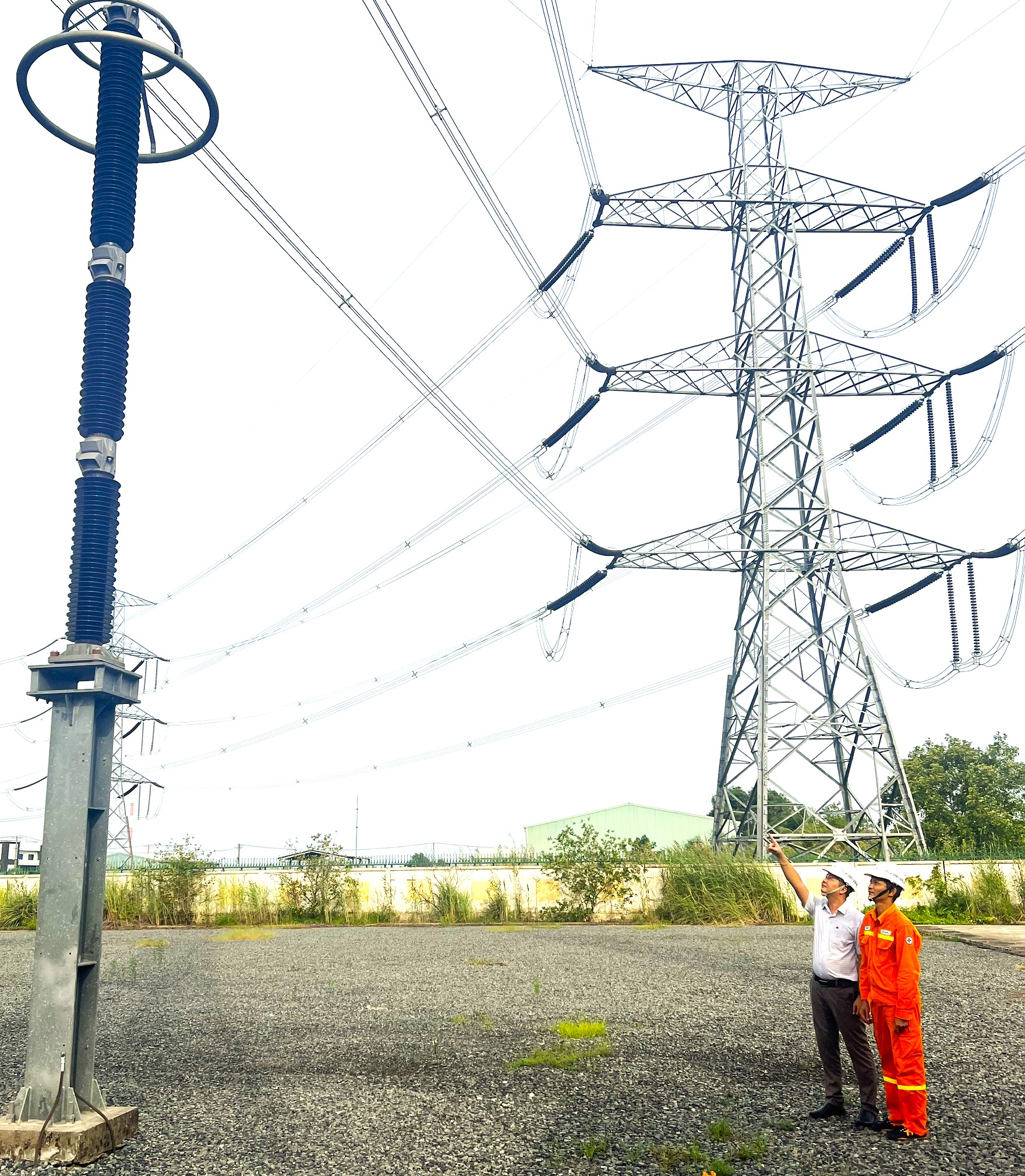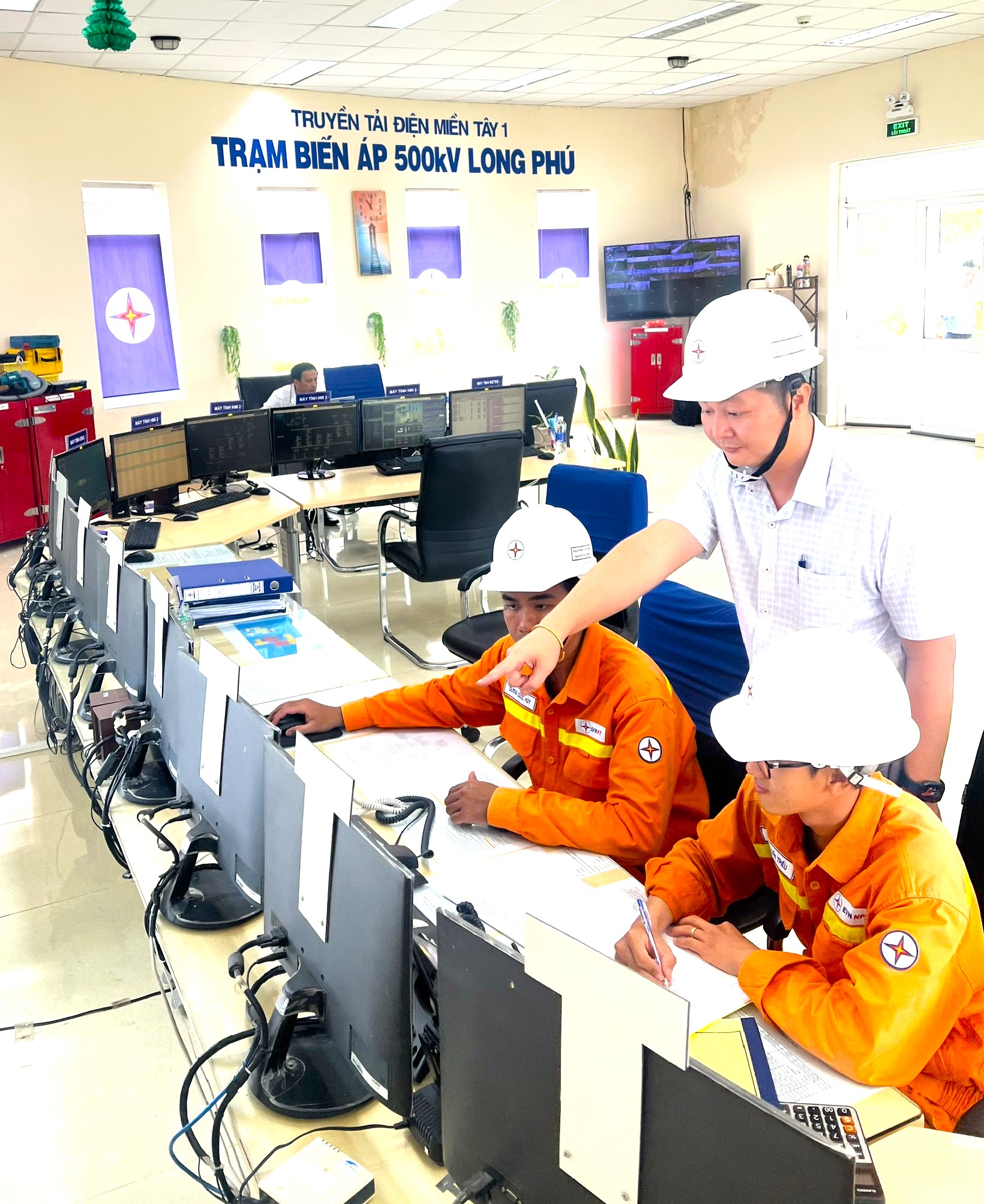 Anh Võ Sỹ Danh đang hướng dẫn vận hành cho Điều hành viên Trạm biến áp 500kV Long Phú.