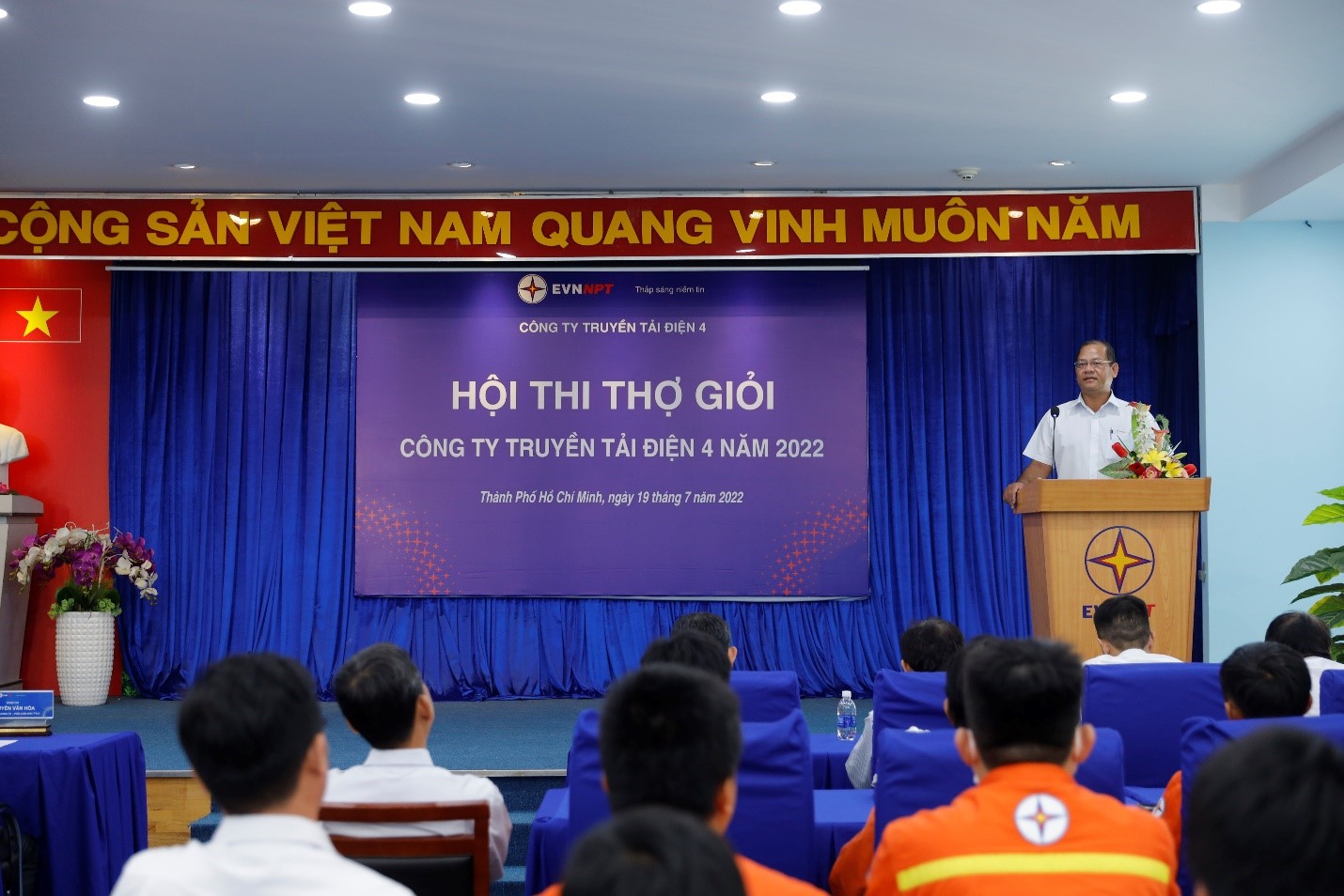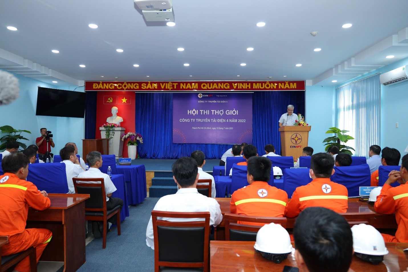Thực hiện theo kế hoạch của Hội thi, trong ngày hôm nay 19/7/2022, phần thi QLVH TBA sẽ diễn ra tại Trạm biến áp 220kV Bến Lức - TTĐHCM, phần thi QLVH đường dây kỹ năng truyền thống sẽ thực hành tại vị trí trụ 73 đường dây 220kV Long An – Mỹ Tho thuộc TTĐ.TPHCM, phần thi lý thuyết trắc nghiệm kiến thức QLVH đường dây kỹ năng kiểm tra ĐZ bằng UAV sẽ diễn ra tại Hội trường trụ sở PTC4; trong ngày tiếp theo 20/7/2022, phần thi QLVH đường dây kỹ năng kiểm tra đường dây bằng UAV sẽ thực hành tại đường dây 220kV Thủ Đức – Tân Uyên thuộc TTĐ.MĐ1 và phần thi lý thuyết trắc nghiệm kiến thức QLVH trạm biến áp và QLVH đường dây kỹ năng truyền thống sẽ diễn ra tại trụ sở PTC4. Sau khi tổng kết Hội thi vào ngày mai 20/7/2022, Ban tổ chức sẽ căn cứ kết quả đánh giá để chọn ra 03 đội thi bao gồm đội quản lý và vận hành TBA (06 người), đội quản lý vận hành đường dây kỹ năng truyền thống (06 người), đội quản lý vận hành kiểm tra đường dây kỹ năng UAV (06 người) để tham dự hội thi sơ tuyển cấp Tập đoàn vào tháng 8/2022.