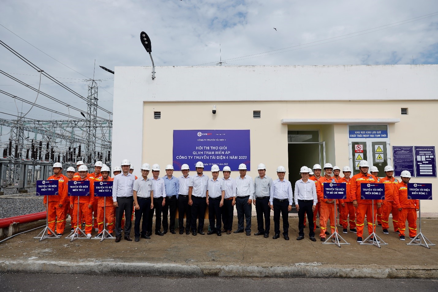 Ban giám khảo và các Đội thi phần thi QLVH trạm biến áp tổ chức tại TBA 220kV Bến Lức – TTĐHCM