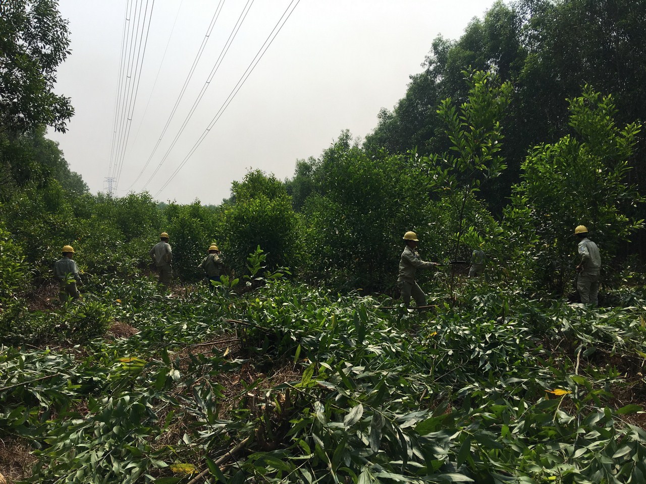 Với mong muốn góp phần nhỏ trong việc loại trừ các nguy cơ gây mất an toàn và bảo vệ an toàn hành lang lưới điện cao áp. Dưới cái nắng oi bức của thời tiết vẫn không làm vơi đi tinh thần, ý chí của lực lượng đoàn viên, thanh niên. Chi đoàn đã thực hiện chặt các cây cao nằm trong hành lang và các cây nằm gần hành lang tránh nguy cơ ngã đổ gây sự cố lưới điện, phát quang các cây cỏ tạp nằm trong hành lang và dưới chân trụ tránh nguy cơ gây cháy ảnh hưởng đến sự vận hành an toàn của đường dây này.