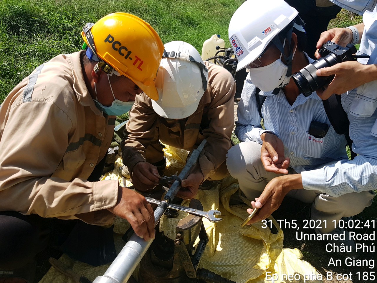 Đơn vị thi công đang đo điện trở tiếp xúc sau khi nối dây.