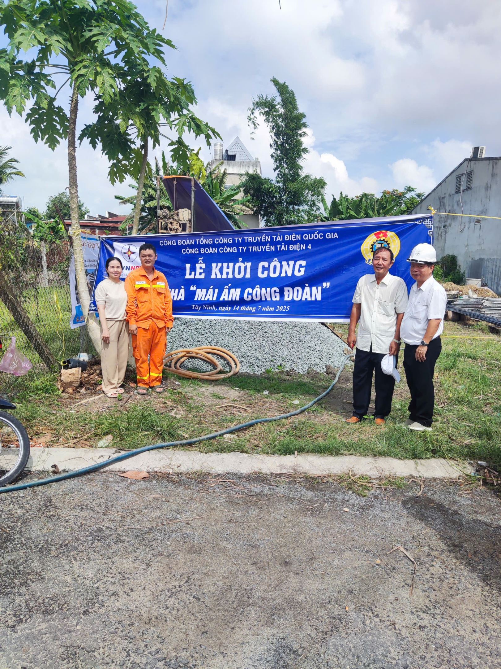 Đại diện chuyên môn, Công đoàn Tổ thao tác lưu động Tây Ninh cùng với gia đình ông Lâm Công Danh khởi công xây dựng nhà "Mái ấm công đoàn".
