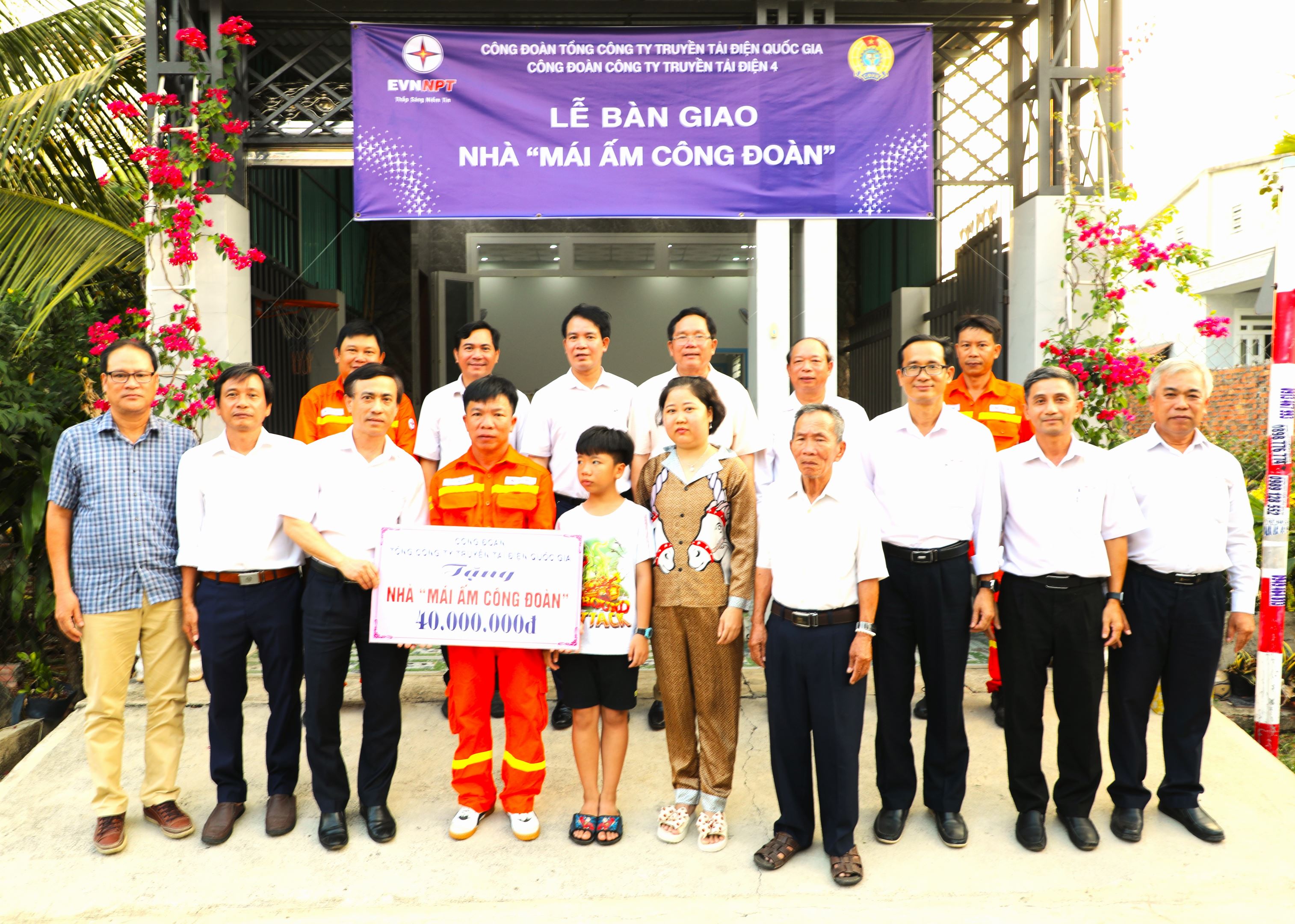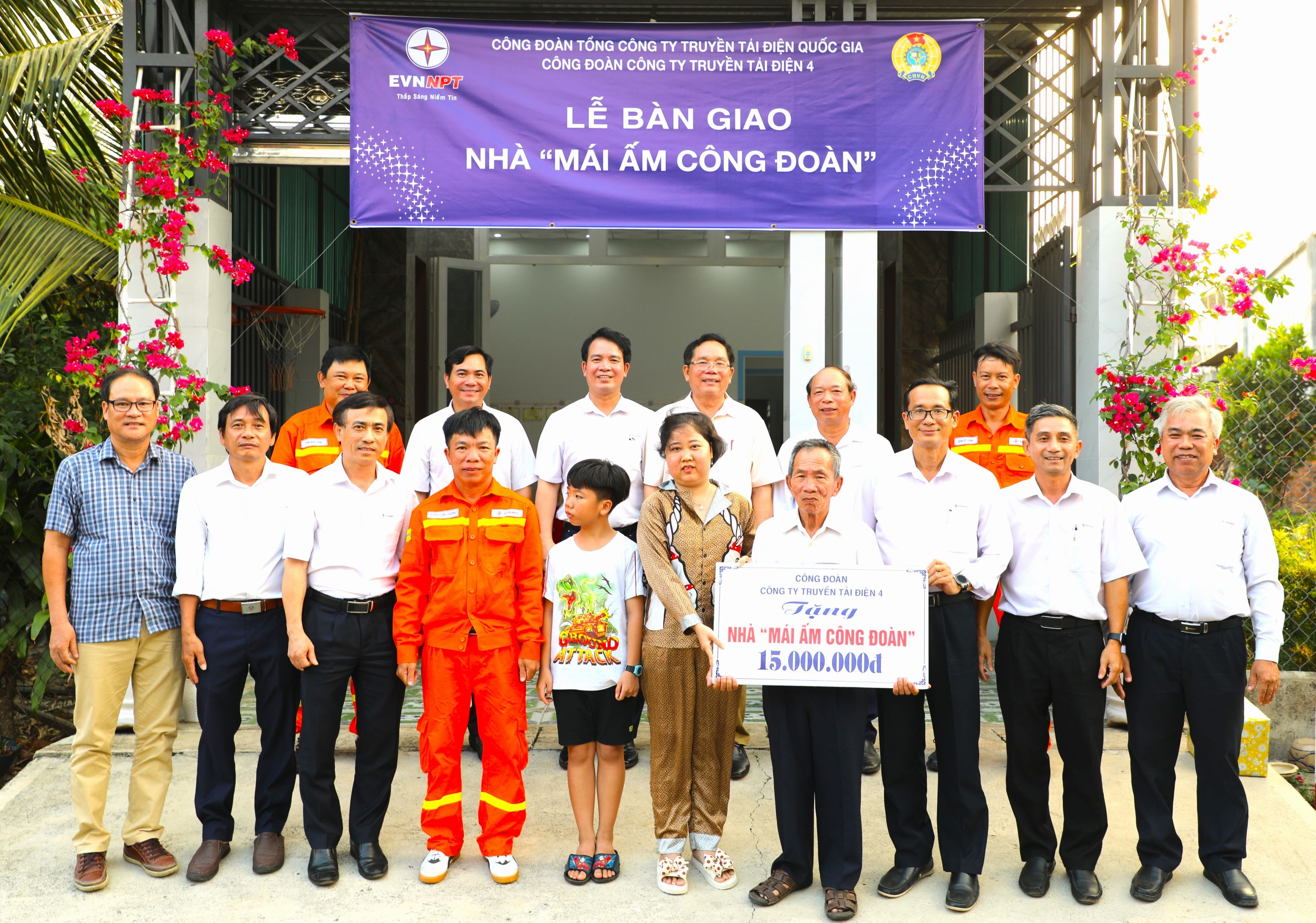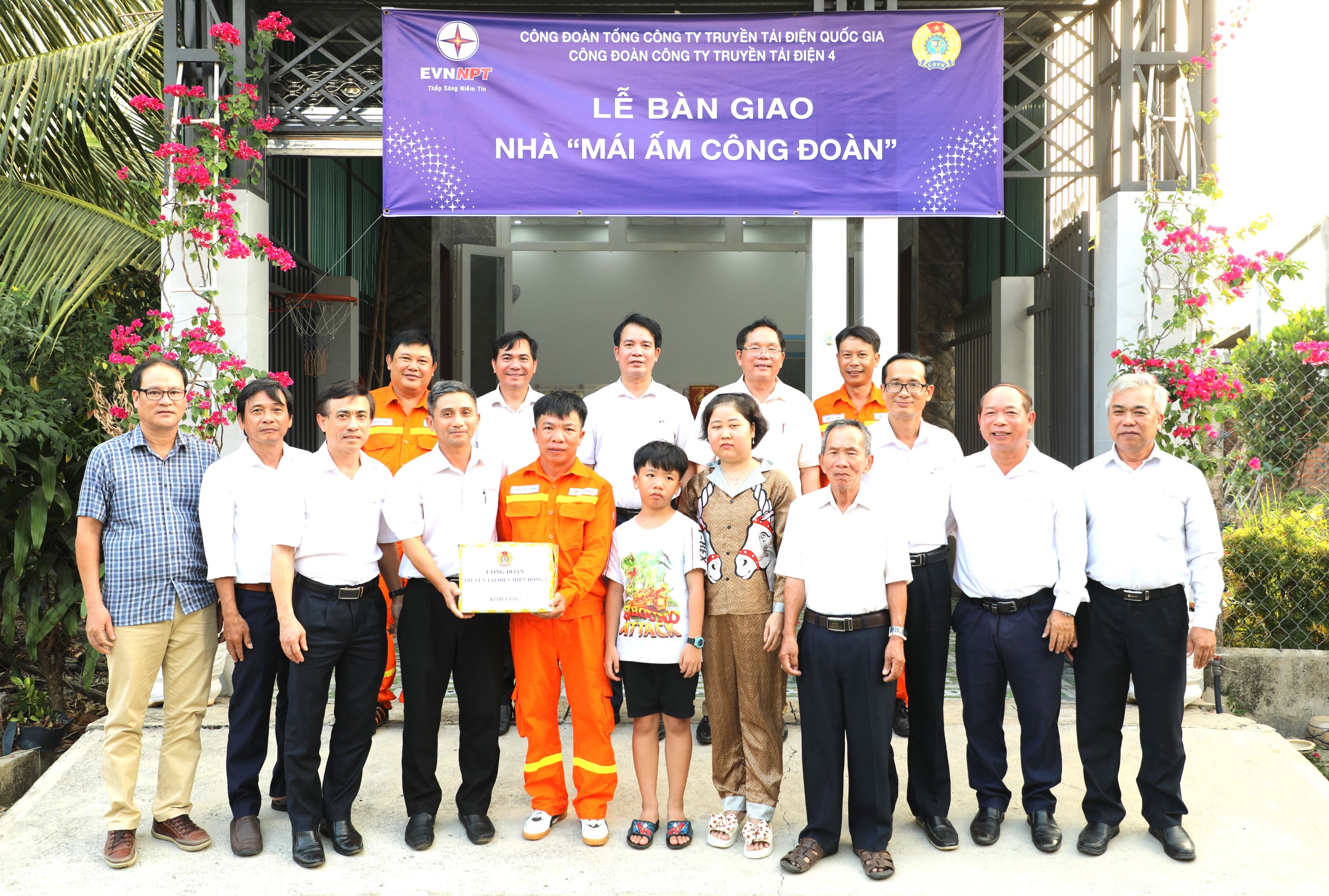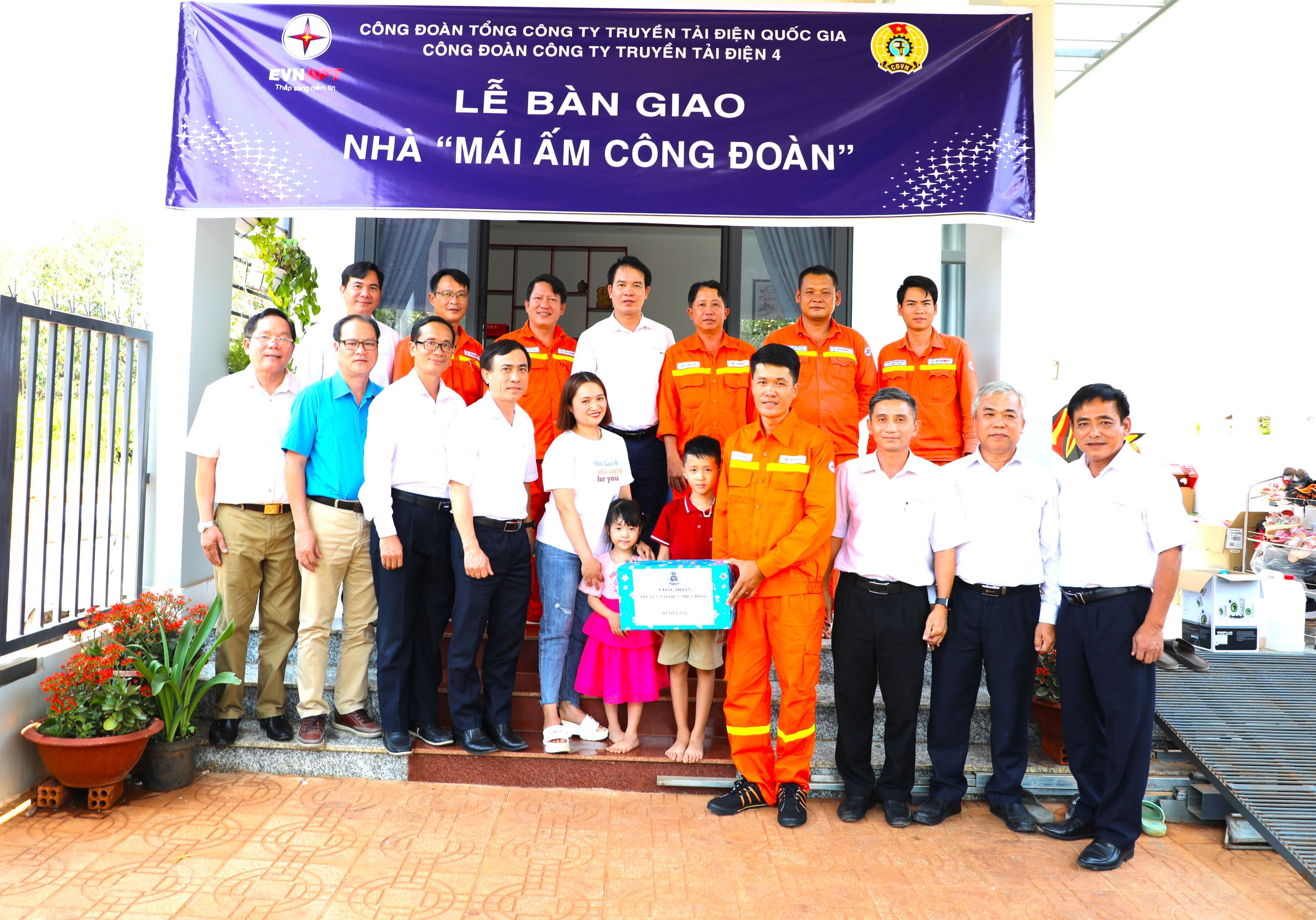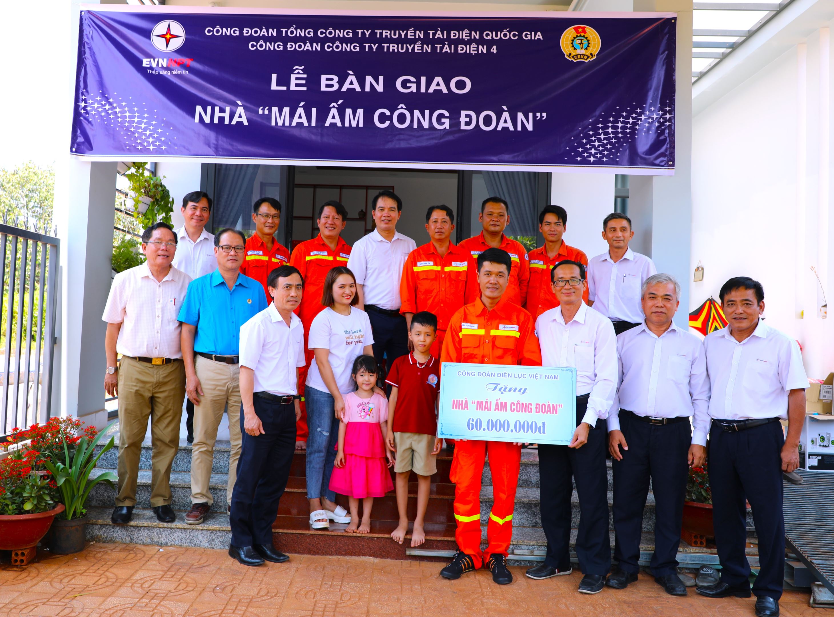 Đến trao nhà “Mái ấm công đoàn” có Ông Nguyễn Huy Thắng, Phó Chủ tịch Công đoàn Tổng công ty; Ông Nguyễn Hoàng Sơn, UVBTV Công đoàn Tổng công ty; Ông Nguyễn Đăng Thông UVBCH Công đoàn Tổng công ty; Ông Nguyễn Phương Nam, Chủ tịch Công đoàn Công ty Truyền tải điện 4, Ông Nguyễn Văn Lịch, Chủ tịch Công đoàn Truyền tải điện miền Đông 2.