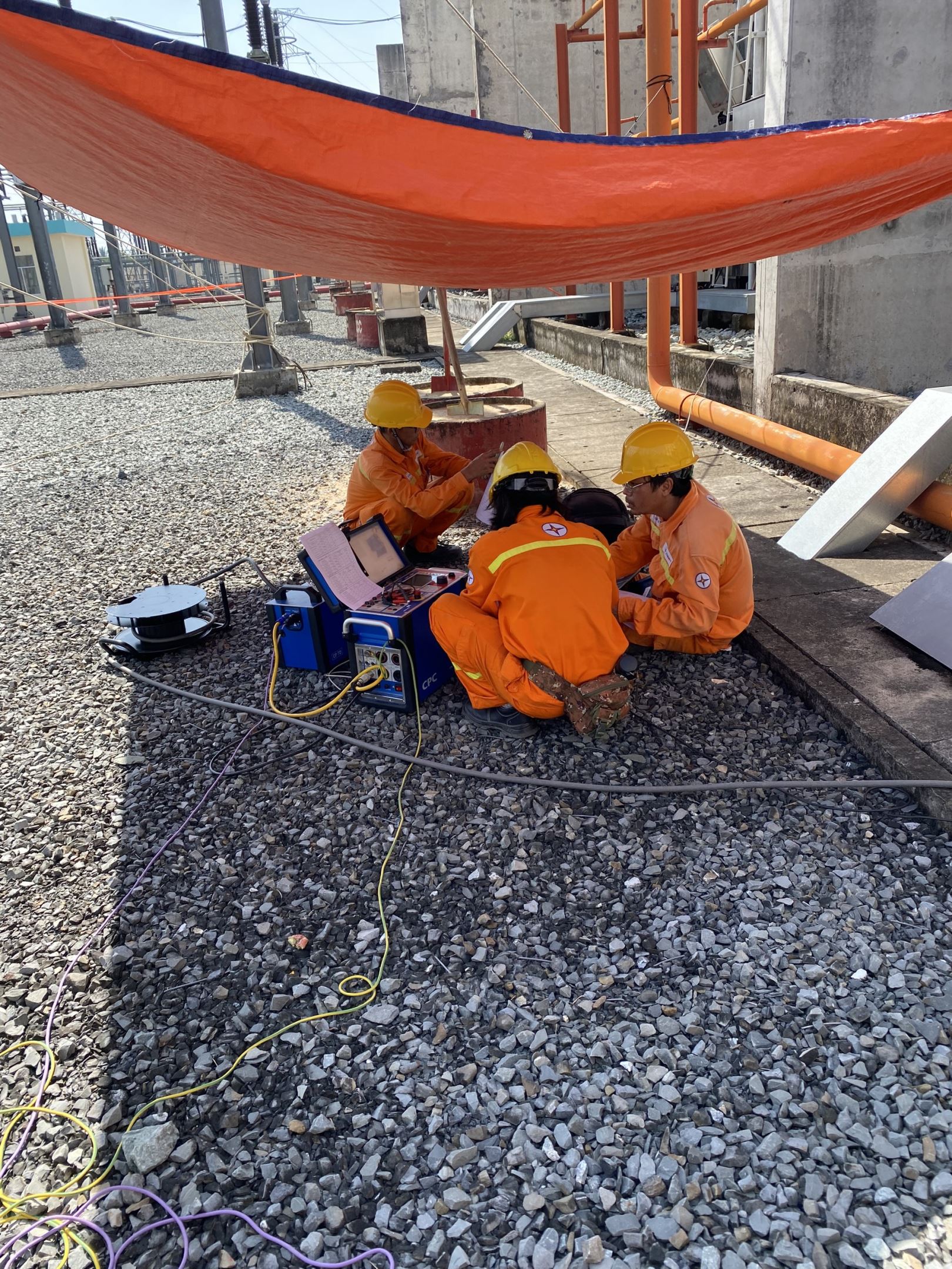 Tổ Thí Nghiệm Điện (Đội SCTNĐ4) đang chuẩn bị máy thí nghiệm kiểm tra định kỳ MBA AT2.