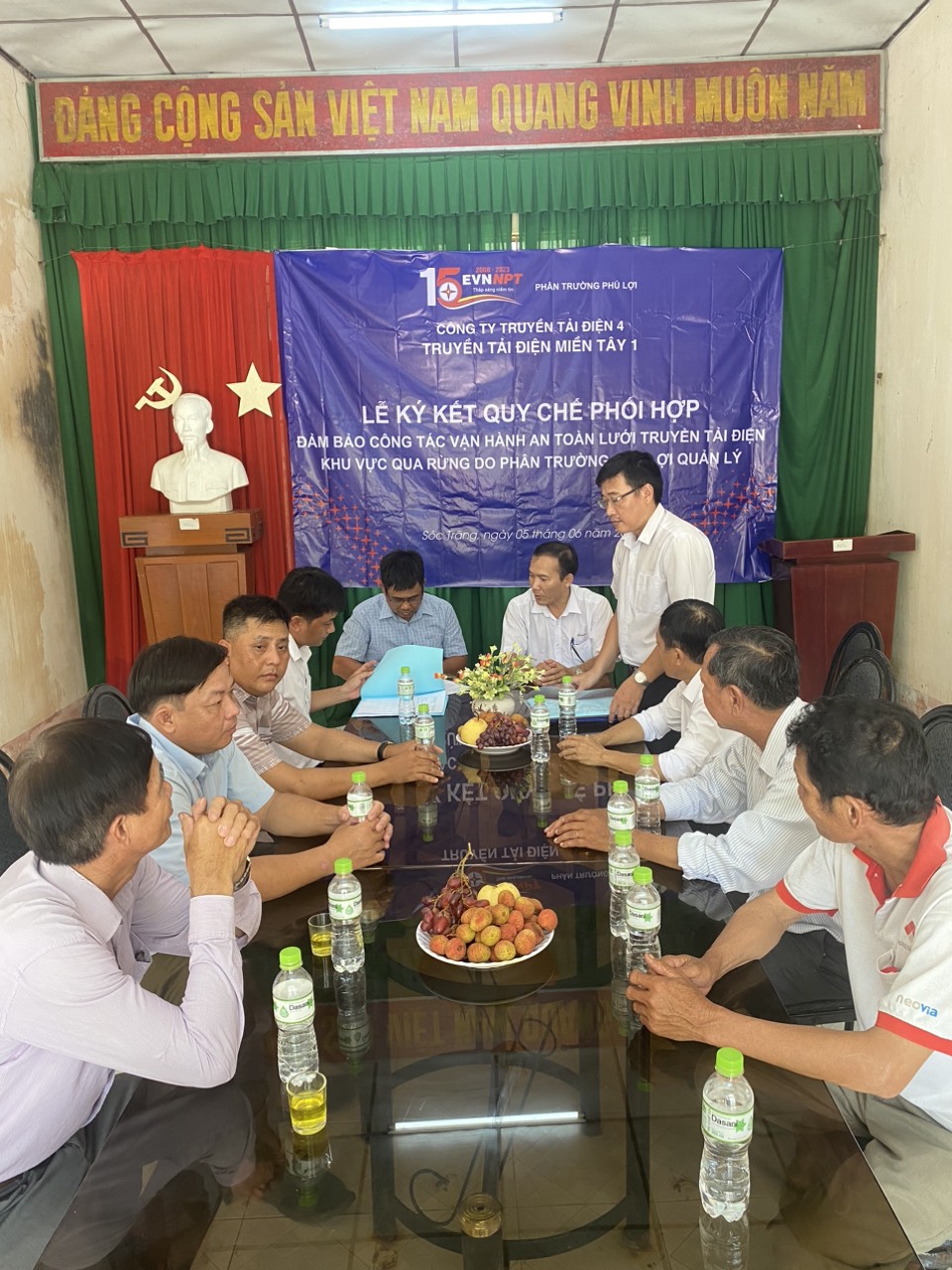 Thực hiện theo Nghị định số 133/2015/NĐ-CP, ngày 28 tháng 12 năm 2015 của Chính phủ Quy định việc phối hợp của dân quân tự vệ với các lực lượng trong hoạt động bảo vệ biên giới, biển, đảo; bảo vệ an ninh chính trị, trật tự, an toàn xã hội ở cơ sở; bảo vệ và phòng, chống cháy rừng;được sự đồng ý của Công ty TNHH MTV Lâm nghiệp Sóc Trăng và Lãnh đạo Công ty Truyền tải điện 4 (PTC4), ngày 05/06/2023, tại Phân trường Phú Lợi, ông Phạm Ngọc Luật – Phó Bí thư Đảng bộ bộ phận TTĐMT1, Phó Giám đốc Truyền tải điện Miền Tây 1 (TTĐMT1) và Ông Trần Ngọc Dũng, Giám đốc Phân trường Phú Lợi đã ký kết Phương án phối hợp bảo vệ đường dây truyền tải điện cao áp và Phương án phối hợp PCCC hành lang đường dây trong khu vực Rừng Tràm do Phân trường Phú Lợi quản lý từ trụ 64 đến trụ 73 (chiều dài 3665 mét) Đường dây 500kV Long Phú – Ô Môn trên địa bàn thuộc ấp Đắc Thế, Xã Hồ Đắc Kiện, Huyện Châu Thành, Tỉnh Sóc Trăng. (Khu vực rừng Tràm này thuộc Phân trường Phú Lợi quản lý).