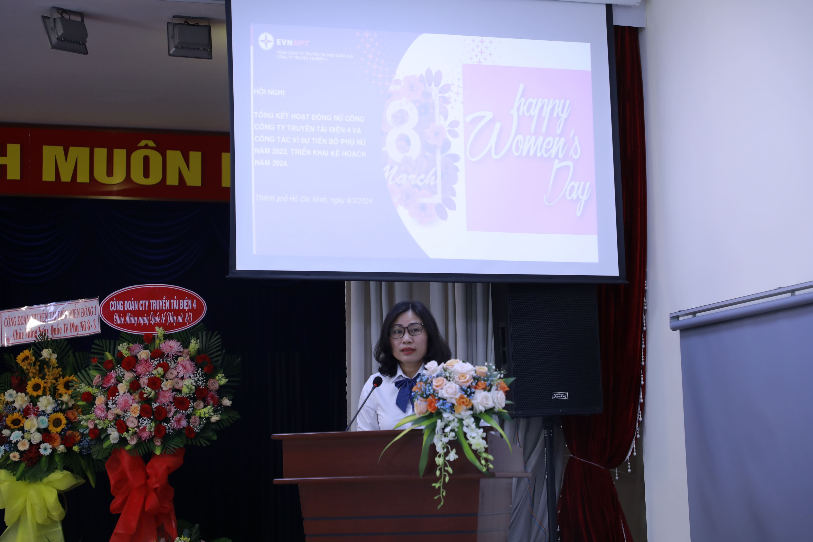 Báo cáo tại Hội nghị, Chị Đào Thị Diệu Thúy – Phó ban nữ công Công ty cho biết trong năm 2023, Nữ CNVC Công ty đã phấn đấu không ngừng trong các hoạt động sản xuất, tích cực trong các phong trào đoàn thể góp phần vào sự phát triển và hoàn thành nhiệm vụ của Công ty. Trên tinh thần đó, Ban nữ công Công ty đã tổ chức tổng kết hoạt động nữ công và VSTBPN năm 2023, triển khai nhiệm vụ kế hoạch năm 2024, đồng thời cũng là nhân dịp kỷ niệm 114 năm ngày Quốc tế phụ nữ 8/3/1910 – 8/3/2024 và 1976 năm ngày khởi nghĩa Hai bà Trưng. Hội nghị cũng kết hợp với chương trình trao đổi về chủ đề “Sức khỏe cho phụ nữ” để nâng cao kiến thức về bảo vệ sức khỏe của nữ CNVCLĐ Công ty.