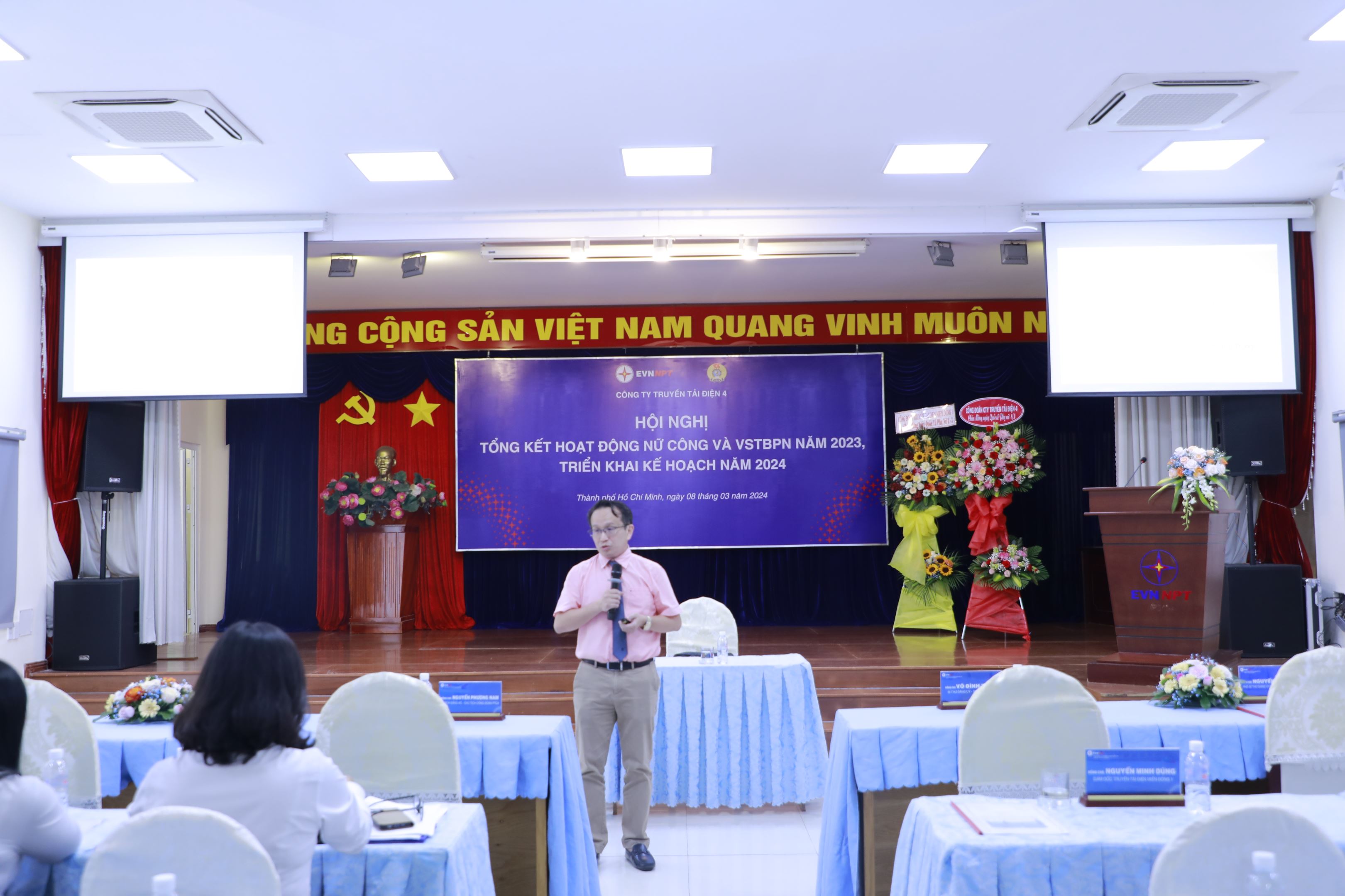 Phát biểu chỉ đạo tại Hội nghị, ông Nguyễn Phương Nam, Chủ tịch Công đoàn Công ty biểu dương những đóng góp quan trọng của nữ CNCNV Công ty trong việc hoàn thành xuất sắc nhiệm vụ sản xuất kinh doanh của Công ty năm 2023, đề nghị Ban nữ công quan tâm tuyên truyền, vận động nữ CBCNV PTC4 luôn có ý thức rèn luyện phẩm chất phụ nữ EVN “Trách nhiệm - Trí tuệ - Đảm đang - Thanh lịch”, cùng với CNVCLĐ Tập đoàn Điện lực Việt Nam, EVNNPT thực hiện “Thực hành tiết kiệm, chống lãng phí”; nâng cao vị thế, vai trò của nữ CNVCLĐ trong các hoạt động của Công ty, đơn vị. Nữ công cùng Công đoàn, phối hợp Chuyên môn các cấp để kiểm tra giám sát việc thực hiện chế độ chính sách đối với đối tượng là lao động nữ, trong đó tập trung các nội dung về bảo đảm bình đẳng giới, những quy định riêng đối với nữ và phòng chống các dấu hiệu quấy rối tình dục tại nơi làm việc, phát huy tác dụng của công tác đối thoại tại nơi làm việc nhằm bảo đảm chăm lo quyền và lợi ích chính đáng, hợp pháp của lao động nữ. Vận động khuyến khích nữ CNVC rèn luyện thể thao để nâng cao chất lượng sức khỏe, tiếp tục triển khai kế hoạch triển khai VSTBPN và công tác bình đẳng giới theo chỉ đạo của EVN và EVNNPT, tiếp tục thực hiện hoạt động Tuần lễ áo dài và trao quỹ yêu thương để tôn vinh vẻ đẹp áo dài truyền thống và bản sắc Văn hóa của dân tộc. Ngoài ra, đối với dự án trọng điểm đường dây 500kV mạch 3 từ Quảng Trạch đi Phố Nối đang được EVNNPT, EVN và Chính phủ hết sức quan tâm vì đây là công trình cấp bách nhằm giải quyết việc thiếu điện trong mùa khô cho miền Bắc, việc CNCNV Công ty sẵn sàng tham gia chi viện nhằm góp phần hoàn thành công trình là cần thiết, vì vậy đề nghị các chị em quan tâm chia sẻ, động viên đồng nghiệp hăng hái tham gia. Chủ tịch Công đoàn Nguyễn Phương Nam cũng đánh giá cao và thống nhất với các ý kiến góp ý của các tổ nữ công như ý kiến về công tác kiểm tra sức khỏe, ý kiến về công tác bồi huấn chuyên môn trong nội bộ, công tác chuyển đổi số, truyền thông về bảo vệ hành lang an toàn lưới điện cao áp trên nền tảng mạng xã hội, đồng thời đề nghị Ban nữ công sớm lập kế hoạch trình Lãnh đạo Công ty cho thực hiện, góp phần thiết thực vào việc hoàn thành nhiệm vụ chung.