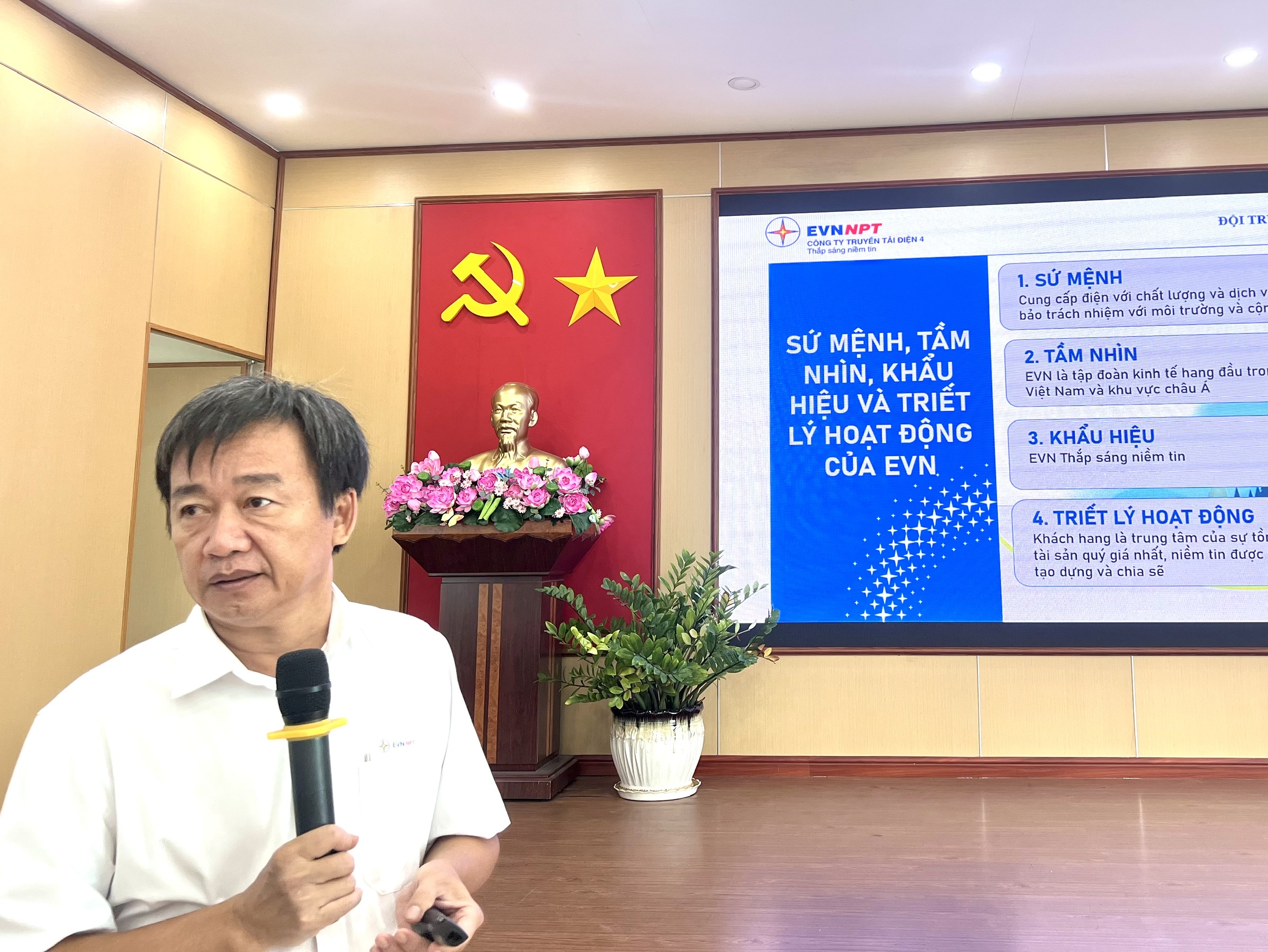 Khóa đào tạo do đồng chí Nguyễn Minh Dũng – giảng viên nội bộ EVNNPT trực tiếp truyền đạt, được triển khai sinh động qua các nội dung trọng tâm như: Tổng quan về Văn hóa EVN và EVNNPT: Sứ mệnh, tầm nhìn, khẩu hiệu và triết lý hoạt động của EVN, các giá trị cốt lõi và chuẩn mực đạo đức của EVN, các nguyên tắc cơ bản trong thực thi Văn hóa EVN, biểu hiện cụ thể trong công tác truyền tải điện; phân tích tình huống thực tế tại các đội, trạm, tổ công tác – nơi mà tinh thần Trách nhiệm và Chất lượng được thể hiện rõ nét qua từng ca trực, từng vị trí thao tác. Giảng viên cũng đã chia sẻ các phương pháp áp dụng hiệu quả giá trị cốt lõi vào công việc hằng ngày như tăng cường tinh thần chủ động, đổi mới sáng tạo, cải tiến kỹ thuật; giữ vững kỷ luật vận hành, ứng xử văn minh trong giao tiếp, và cùng nhau xây dựng hình ảnh người cán bộ công nhân viên truyền tải “An toàn – Trách nhiệm – Niềm tin”.