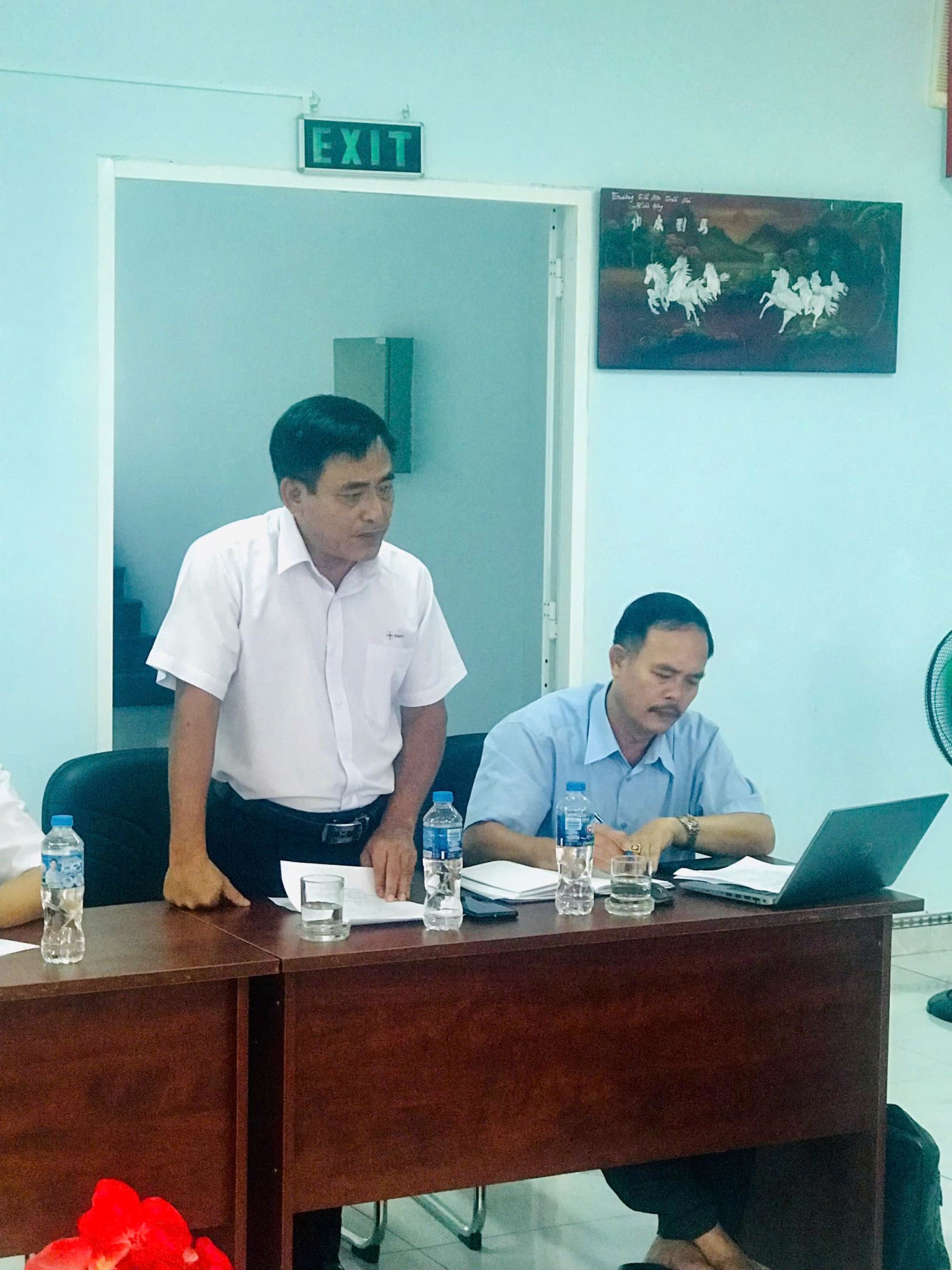 Ảnh: ông Đinh Tiến Hùng – Tổ trưởng Tổ QLVH ĐD Bù Đăng báo cáo tình hình hoạt động của đơn vị.