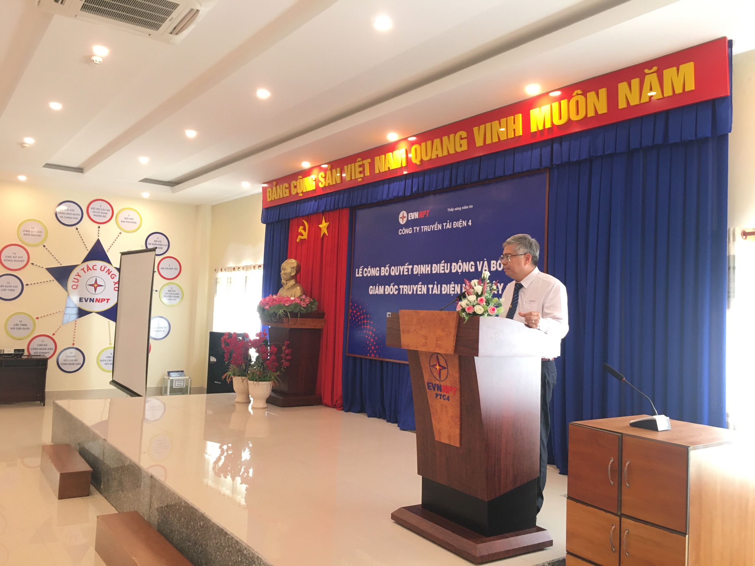 Phát biểu tại buổi lễ, Ông Nguyễn Văn Hóa – Phó Bí thư Đảng ủy, Phó Giám đốc PTC4 đã trao quyết định số 4979/QĐ/PTC4 và chúc mừng ông Trần Quốc Hiệu đã nhận được sự tin tưởng của Đảng ủy cũng như Ban lãnh đạo Công ty, giao trọng trách cho ông Trần Quốc Hiệu, đồng thời bày tỏ mong muốn ông Trần Quốc Hiệu trên cương vị mới sẽ cống hiến nhiều hơn nữa cho sự nghiệp phát triển của TTĐMT1, tiếp tục chỉ đạo tháo gỡ những khó khăn trong mọi hoạt động sản xuất để giúp cho đơn vị TTĐMT1 ngày càng phát triển. Ngoài ra, Phó Giám đốc Công ty cũng gửi đến Lãnh đạo TTĐMT1 cùng toàn thể CBCNV trong đơn vị luôn đồng sức, đồng lòng, phối hợp chặt chẽ, tạo điều kiện để ông Trần Quốc Hiệu hoàn thành tốt nhiệm vụ mới được giao, đồng thời hy vọng với truyền thống đoàn kết, tập thể CBCNV TTĐMT1 sẽ tiếp tục giữ vững lưới điện được vận hành an toàn, liên tục, hoàn thành các nhiệm vụ kinh tế chính trị được cấp trên giao, góp phần vào thành công chung của Công ty Truyền tải điện 4.