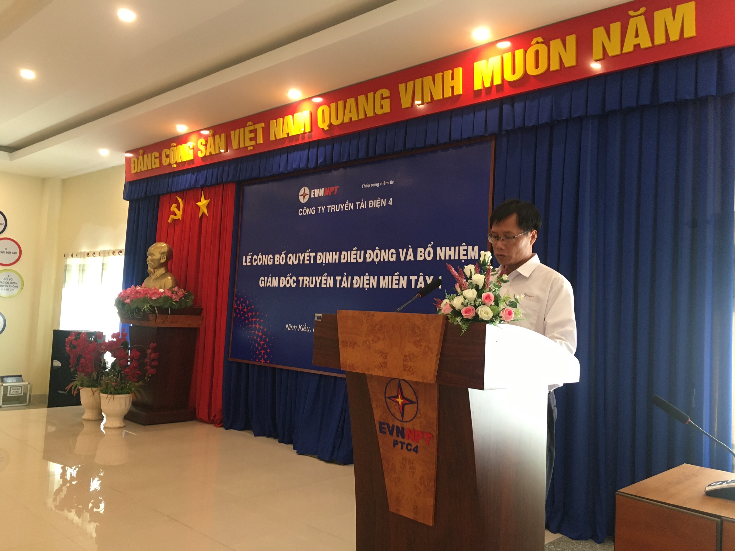 Ông Đặng Nam Sơn - Phó phòng TCNS công bố Quyết định của Công ty Truyền tải điện 4 về việc điều động và bổ nhiệm cán bộ.